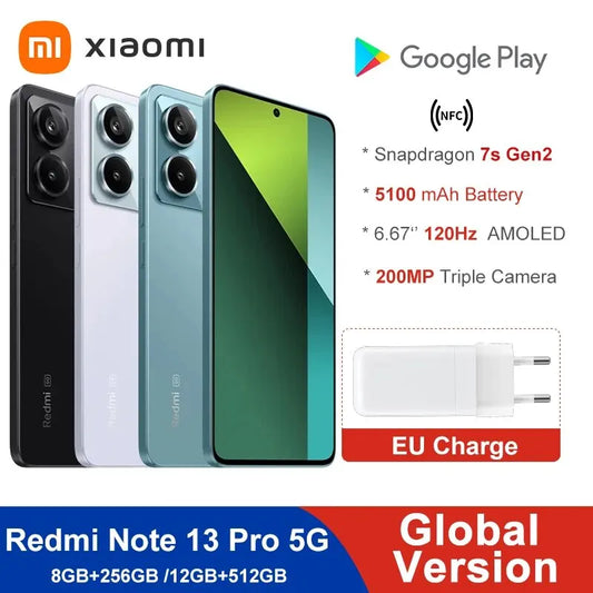 Xiaomi Redmi Note 13 Pro 5G Global Version Cellphone 256GB/512GB 200MP OIS Camera 1.5K 120Hz AMOLED 5100mAh 67W Turbo Charging