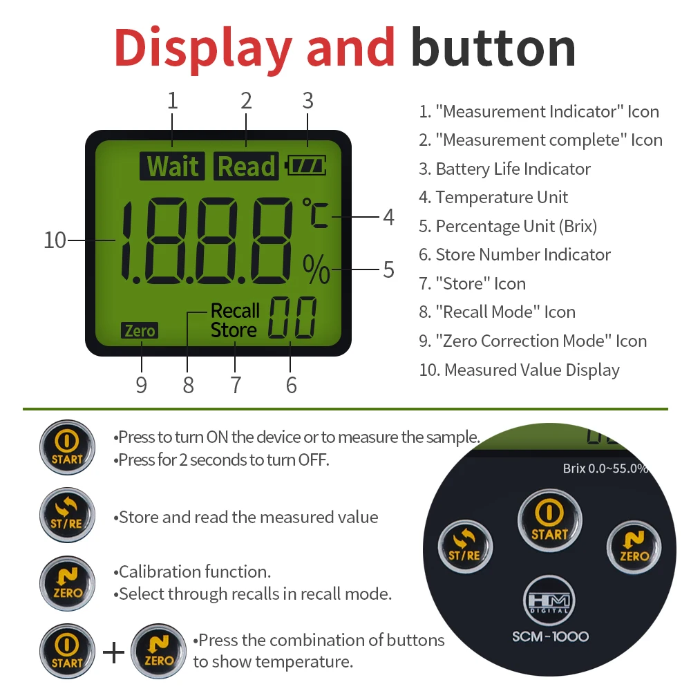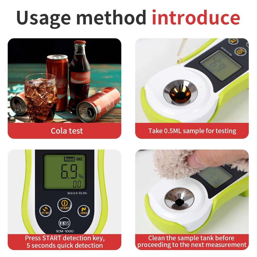 0.0~55.0% Sugar Refractometer LCD Display Digital Refractometer SCM-1000 Brix Meter Densitometer for Fruit Juice Sugar Sauce
