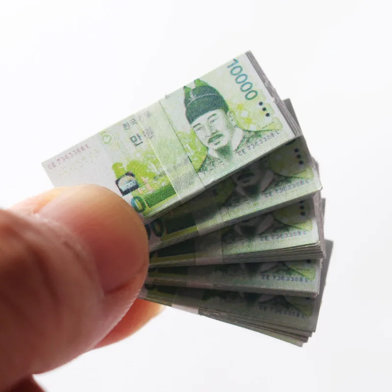 1:12 Dollar KRW Ticket Mini Fake Money Dollhouse Miniature Scene Model Banknotes Prop Dollar Bills Artificial Money Decoration