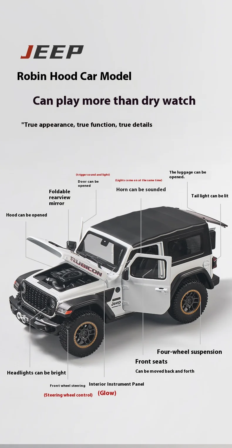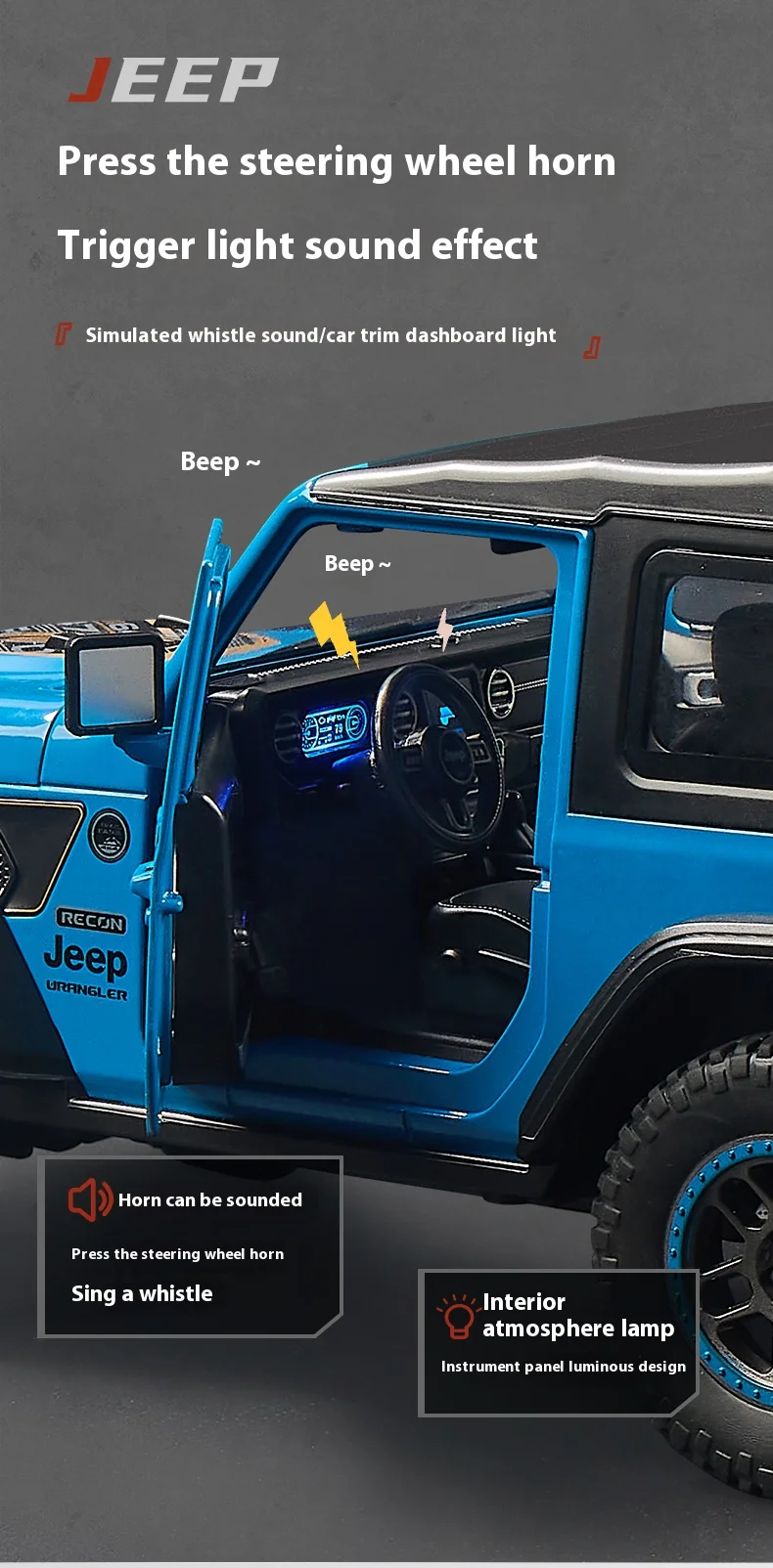1:18 Scale Jeep Wrangler Alloy Model Car Toy with Sound & Light Effects - Perfect Gift for Kids & Collectors!
