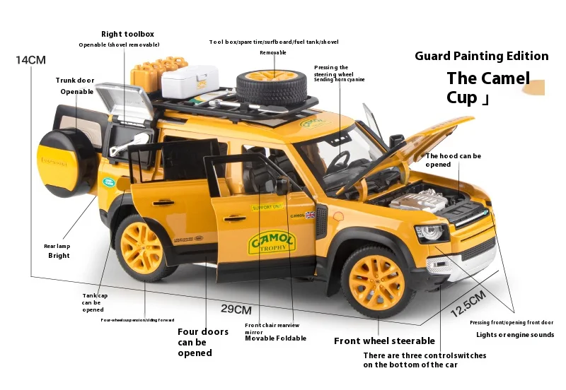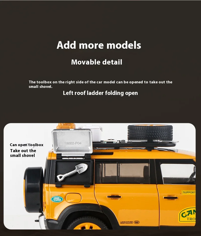 Stunning Painted Edition: The Land Rover Defender Painted Edition toy model boasts a vibrant and eye-catching painted finish, adding a touch of elegance and realism to the classic design.