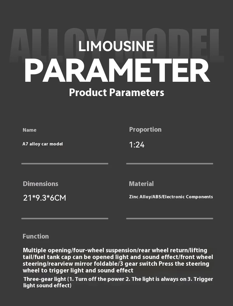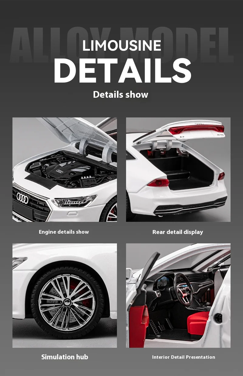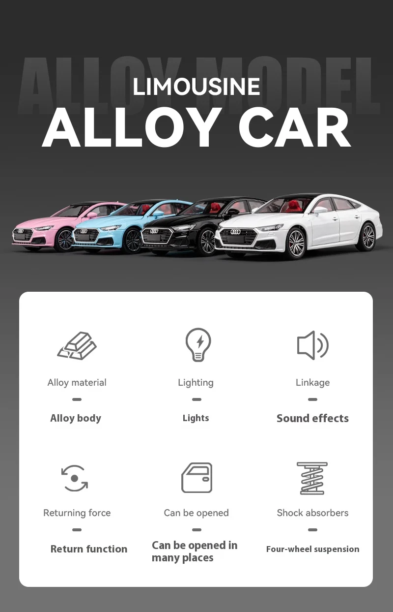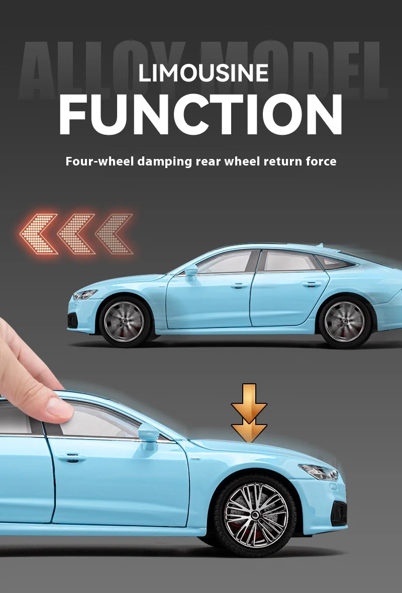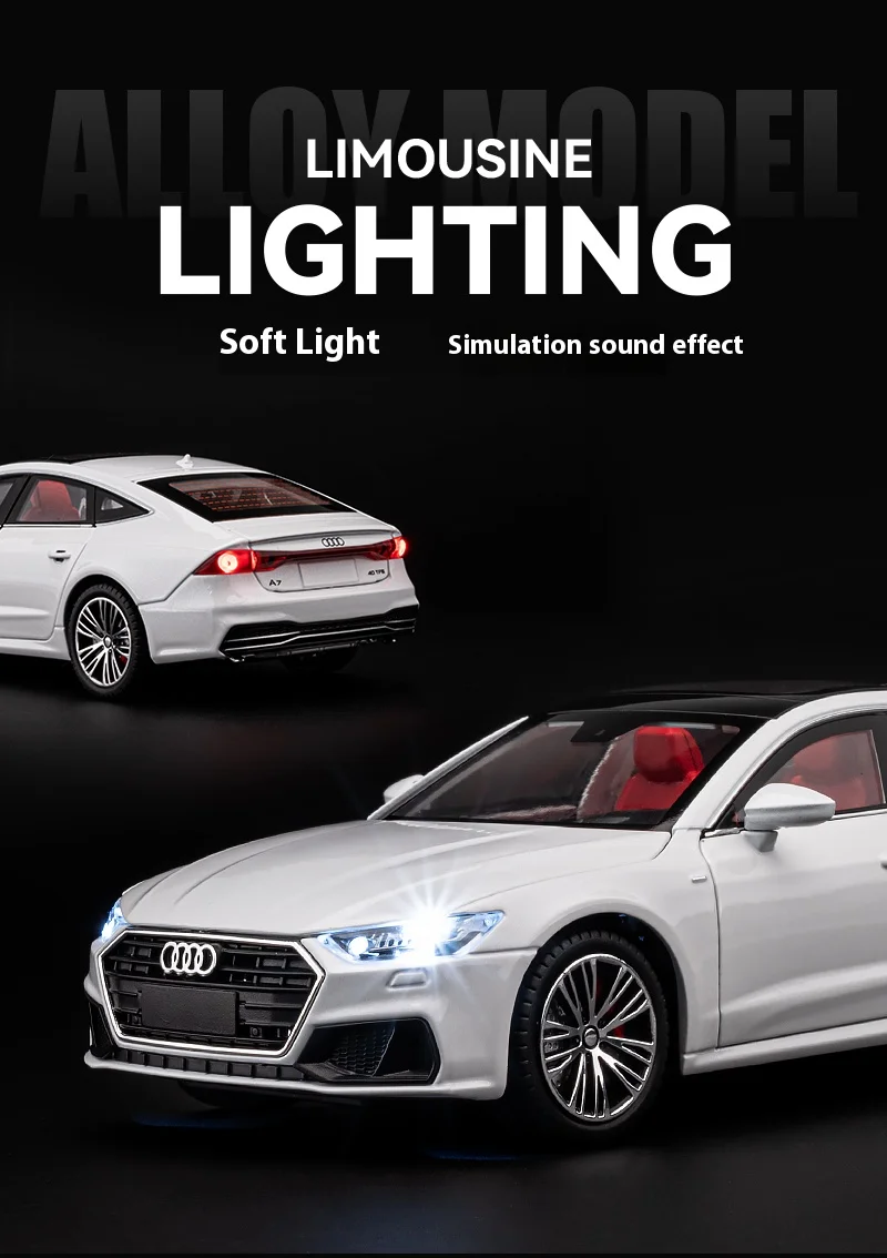1:24 Audi A7 Alloy Car Model with Sound & Light Effects & Spring-back Action - Ideal for Kids & Collectors