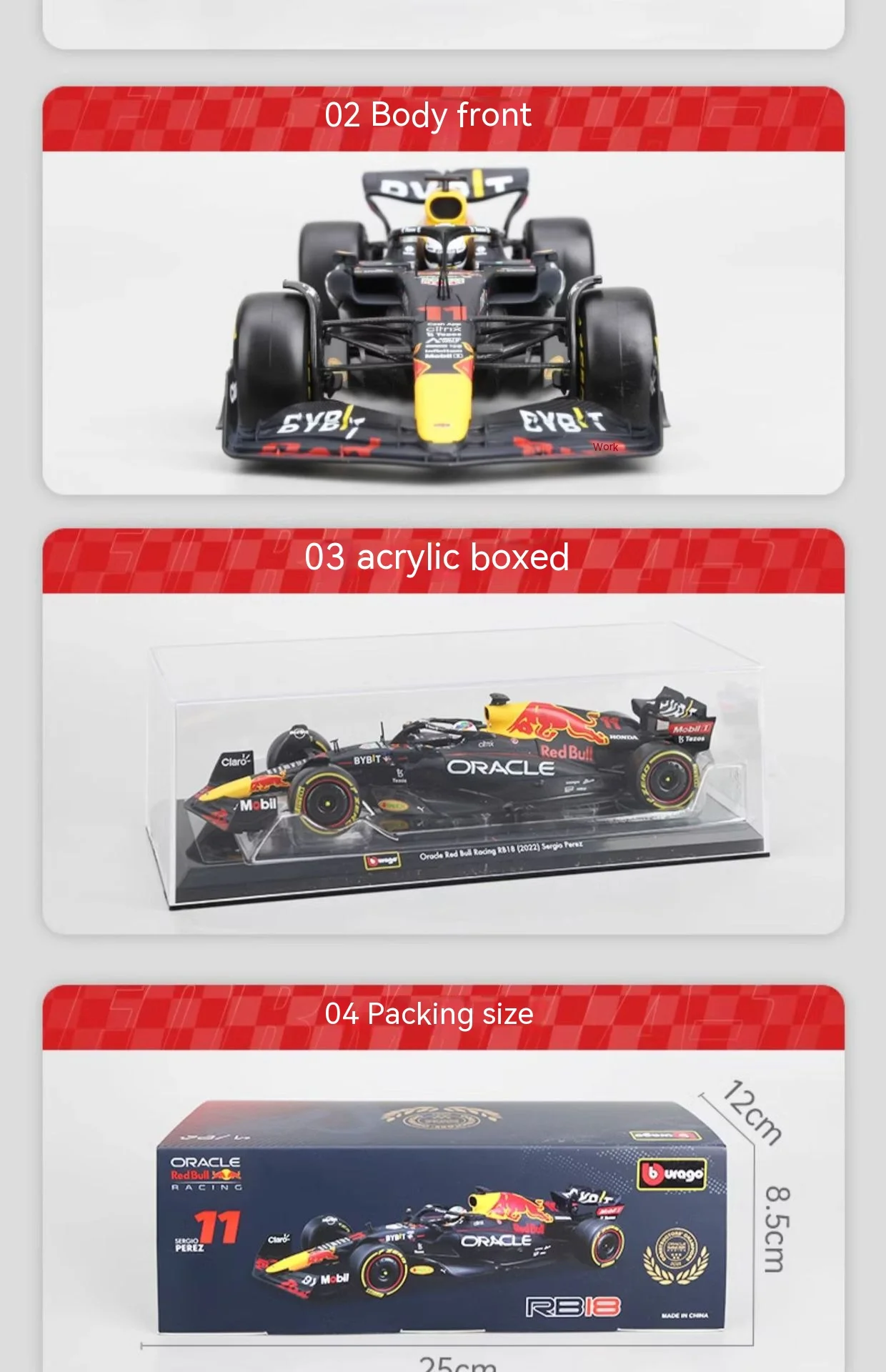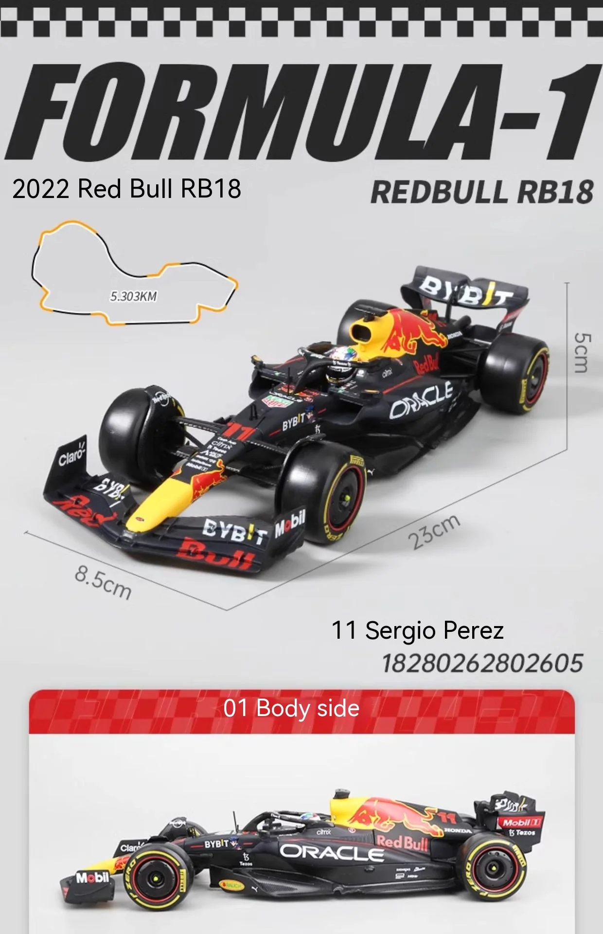 1/24 New F1 RB18#11Perez Racing Compatible with Red Bull 1:24 Static Alloy Car Collectible Gift Die Cast Model