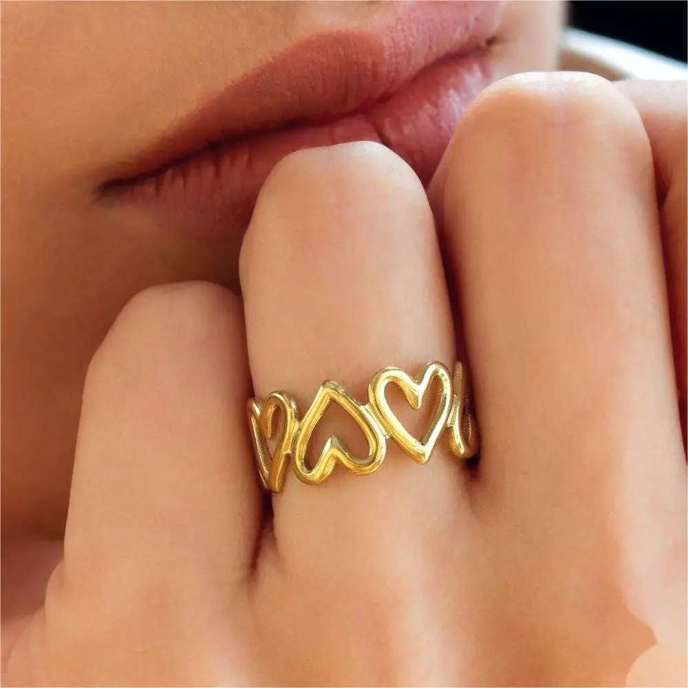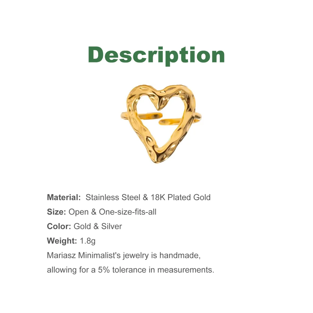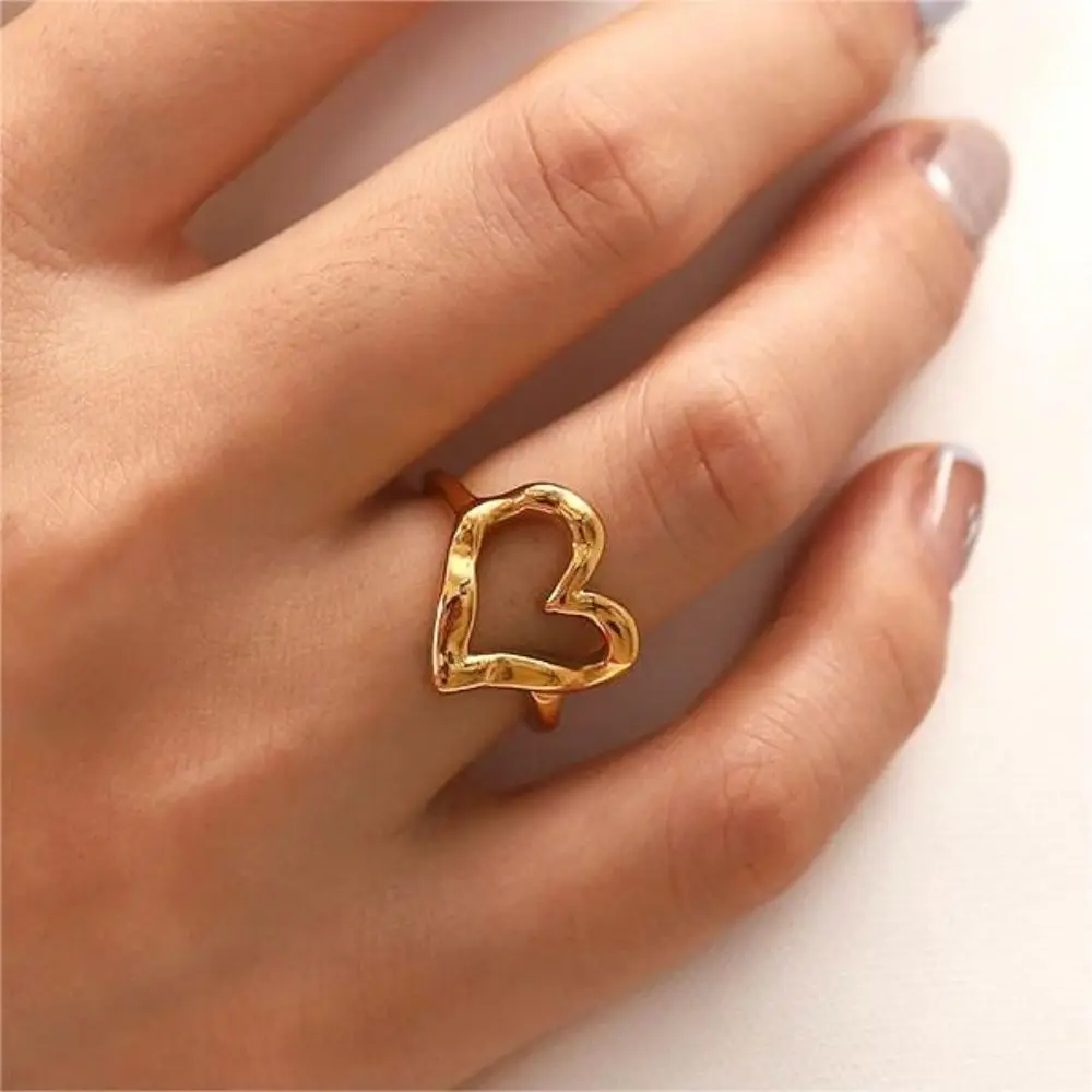 1/3PCS Adjustable Full Circle Hollow Heart-Shaped Open Cuff Ring Stainless Steel Jewelry Irregular Stackable Rings For Women