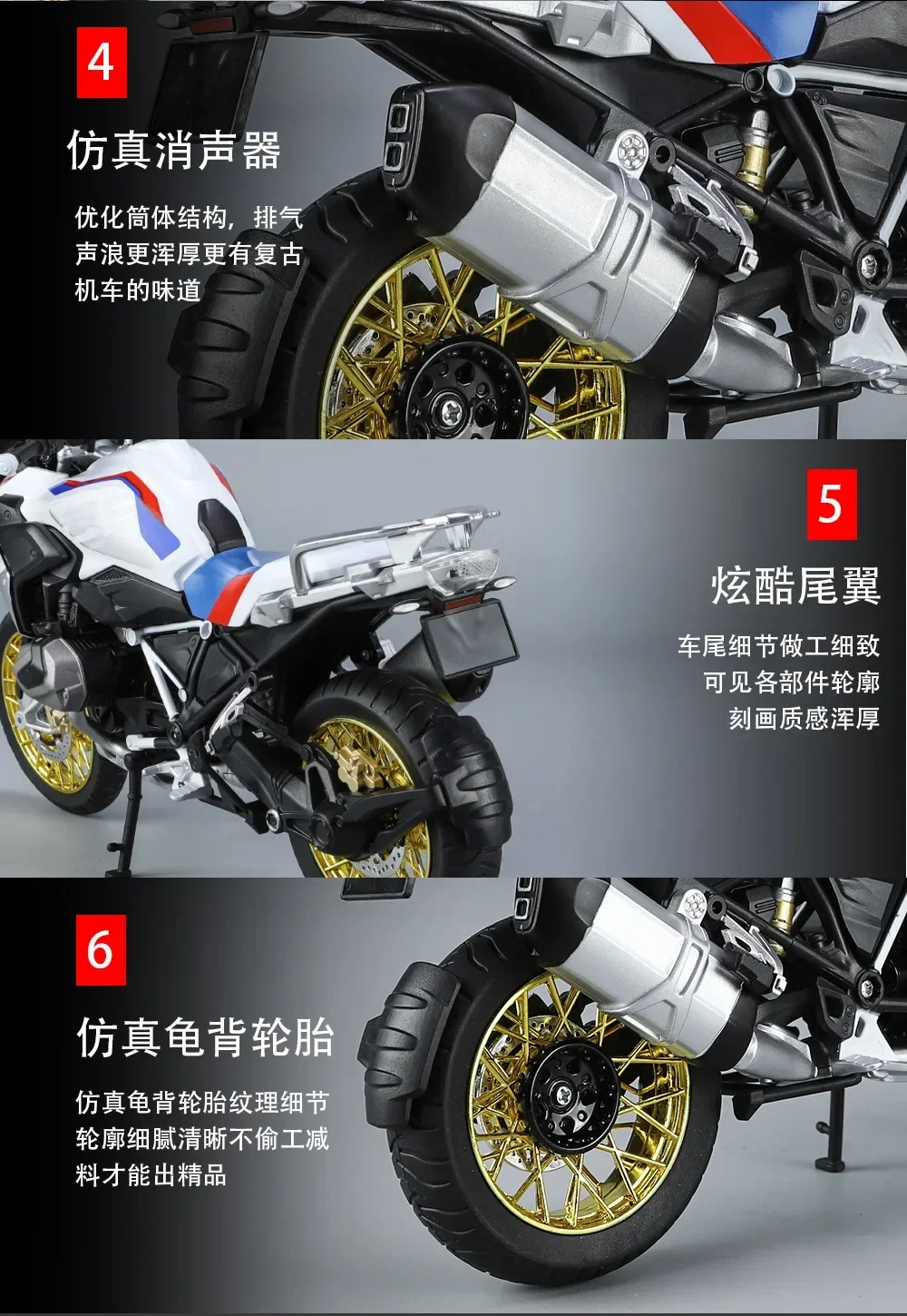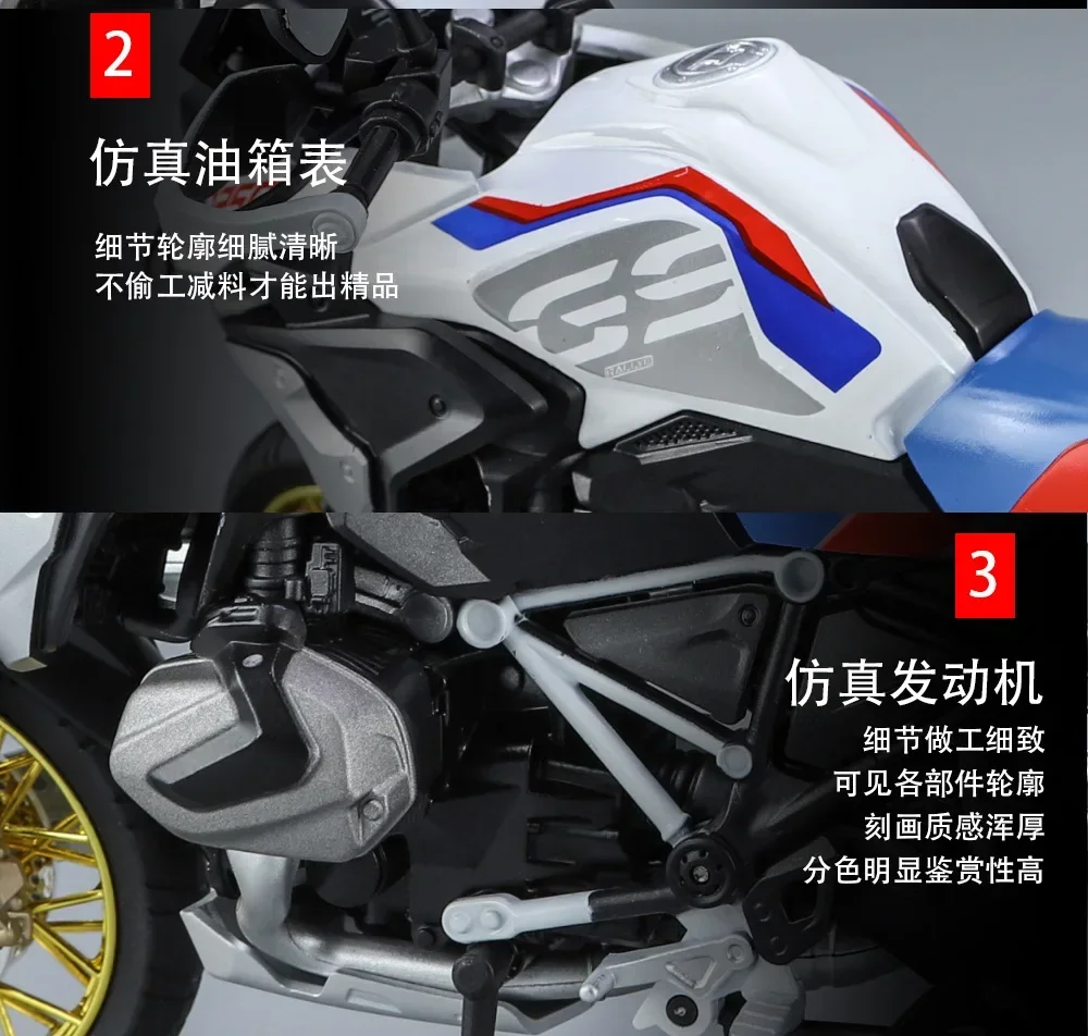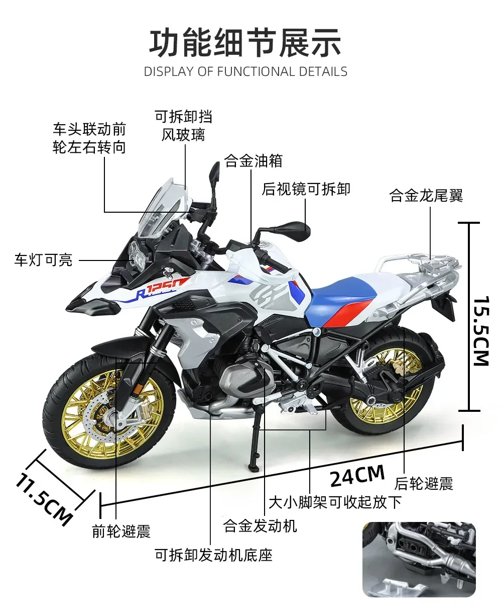 1:9 BMW R1250 GS S1000RR Kawasaki H2R with Accessories, Alloy Motorcycle Model Gift Box Gifts Recommended
