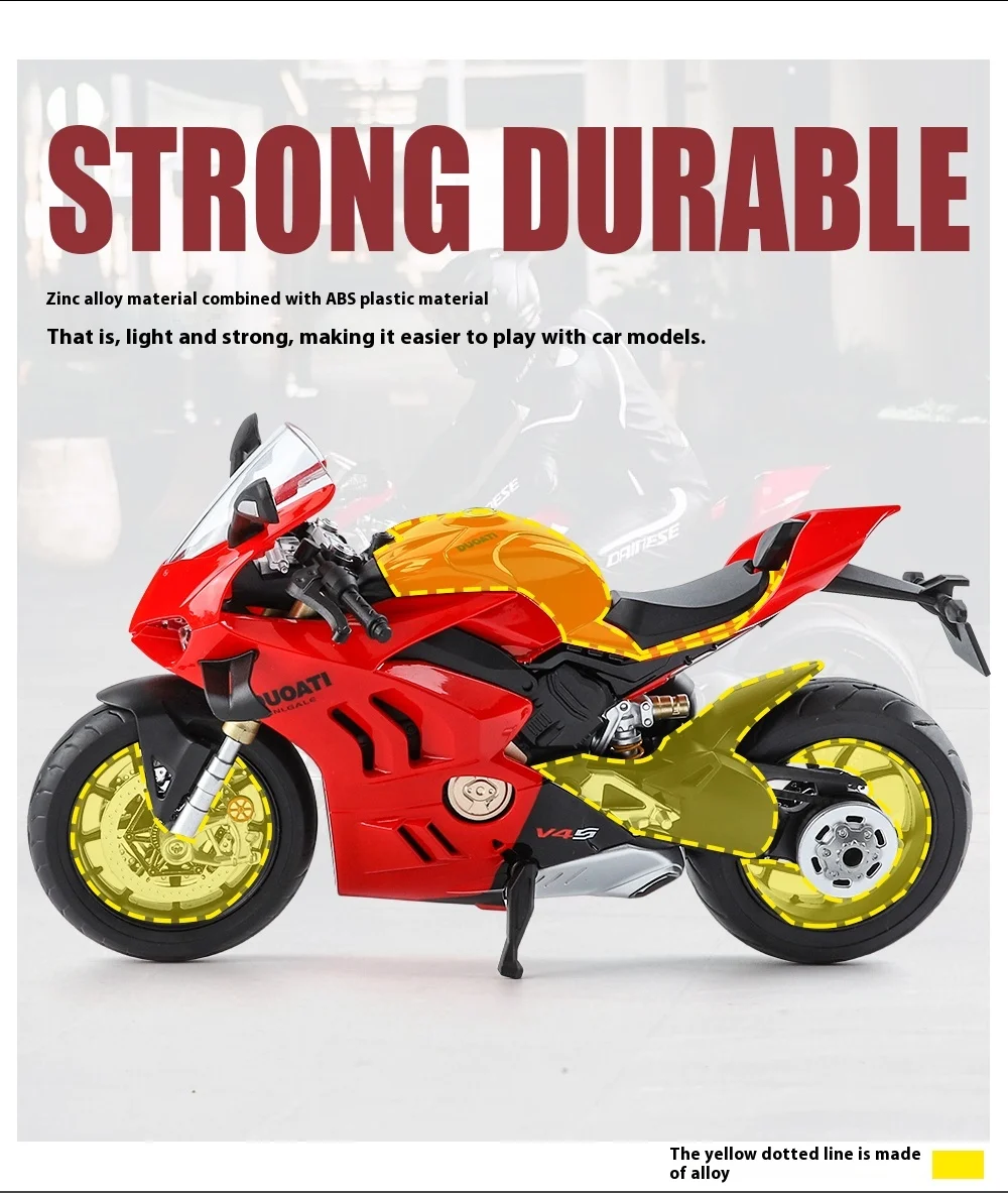 Premium Alloy Construction: Built with premium alloy materials, this motorcycle model is built to last. It's designed to withstand the rigors of play, ensuring it remains a favorite in your child's toy collection for years to come.