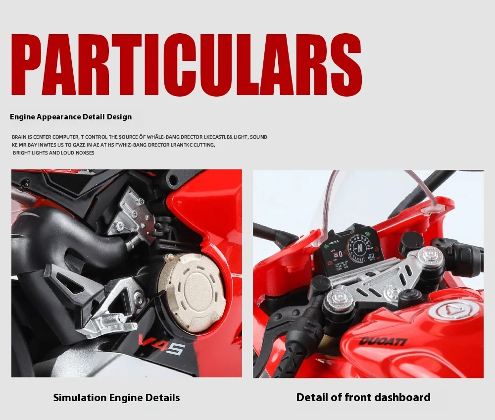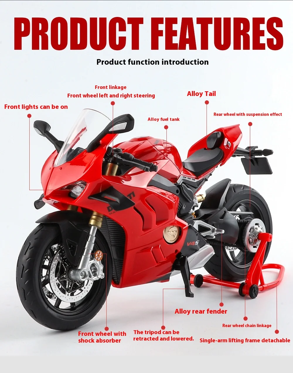 Superb 1:9 Scale Replica: The V4S alloy motorcycle model, crafted at a stunning 1:9 scale, captures every intricate detail of the original bike, providing an unparalleled level of realism for discerning young motorcycle enthusiasts.