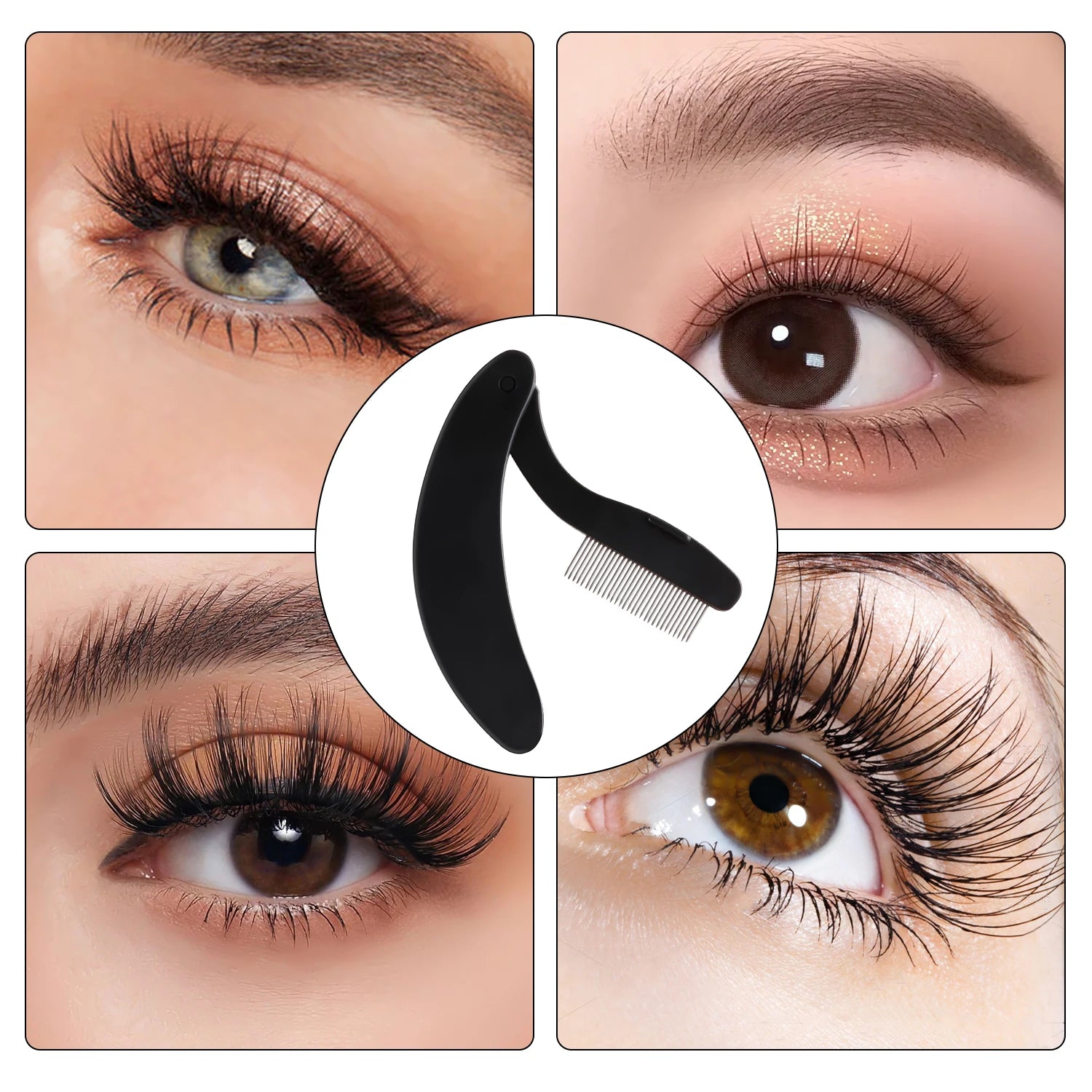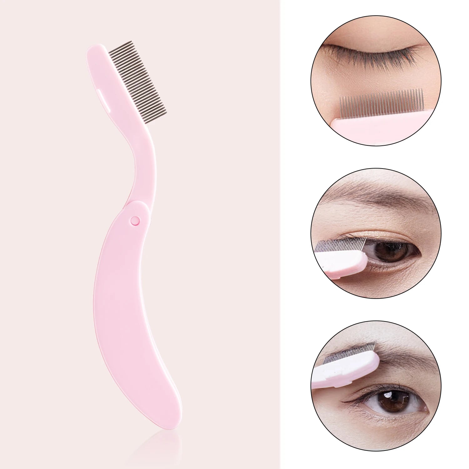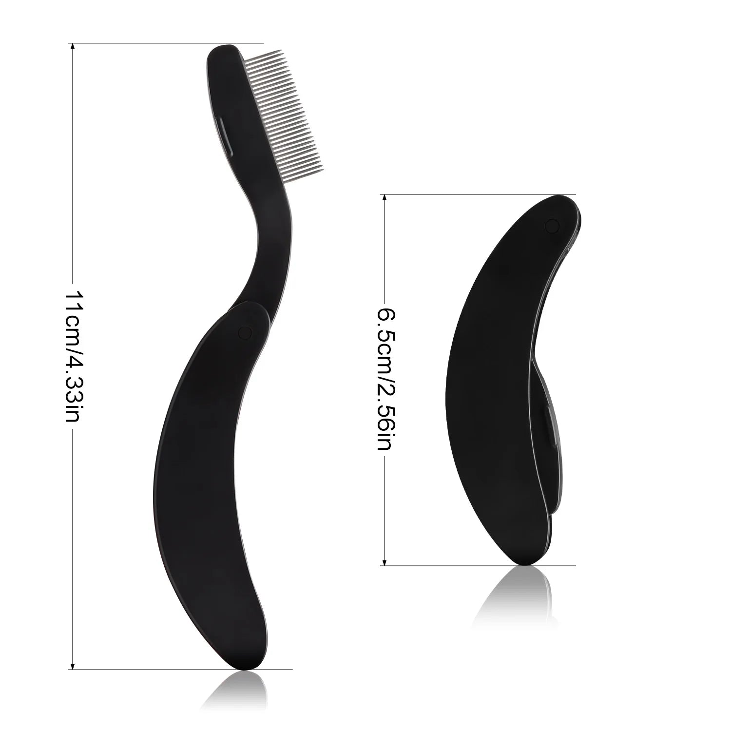 1-pack curved design eyelash beauty folding separator portable eyelash brush comb eyelashes stainless steel eyelash combing tool