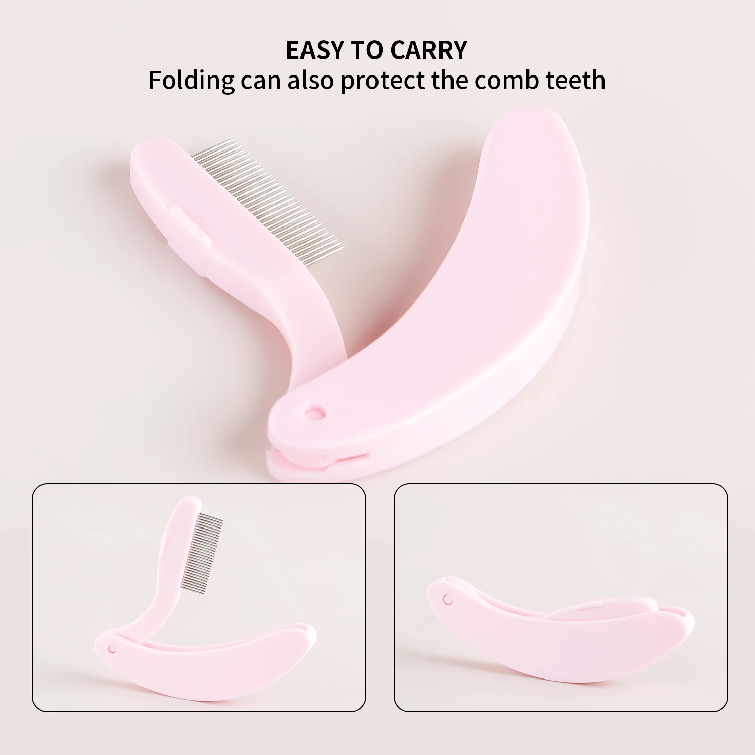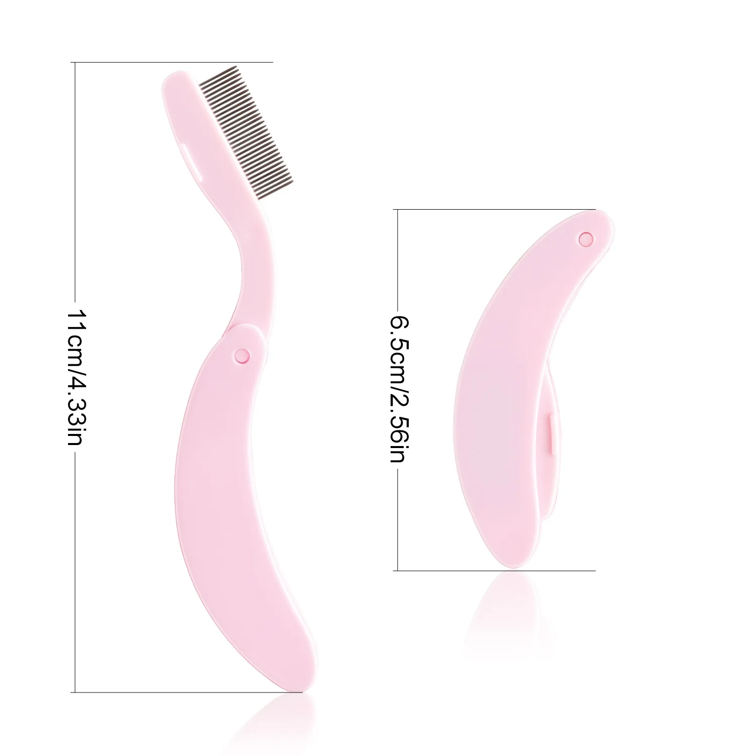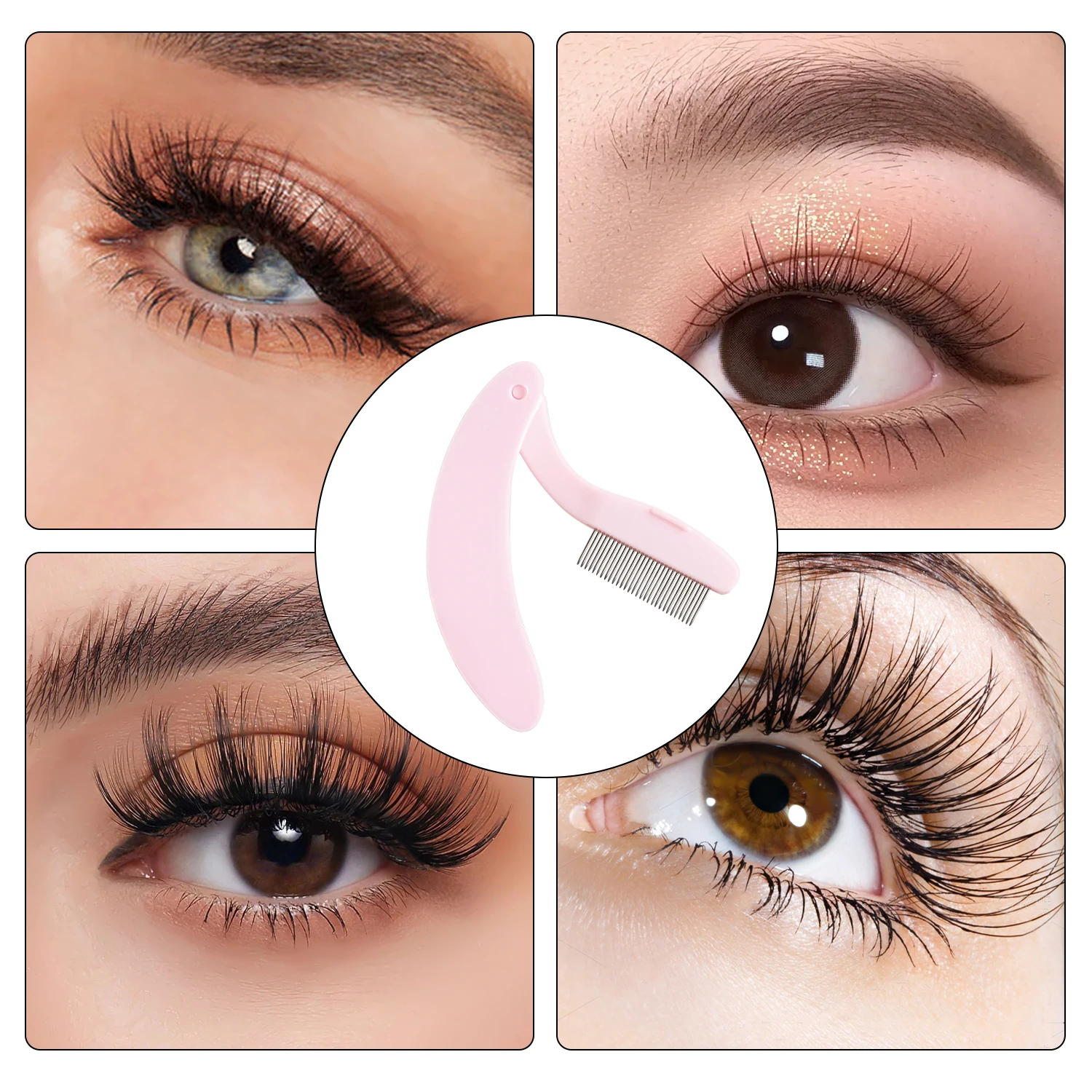 1-pack curved design eyelash beauty folding separator portable eyelash brush comb eyelashes stainless steel eyelash combing tool