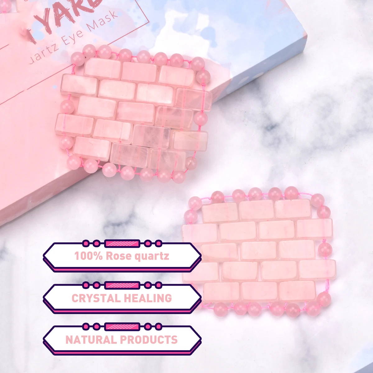 1 Pair Natural Jade Eye Sleep Mask Premium Rose Quartz Pink Eye Stickers Anti-Aging Stone Eye Mask Reduce Wrinkle Eye Lines