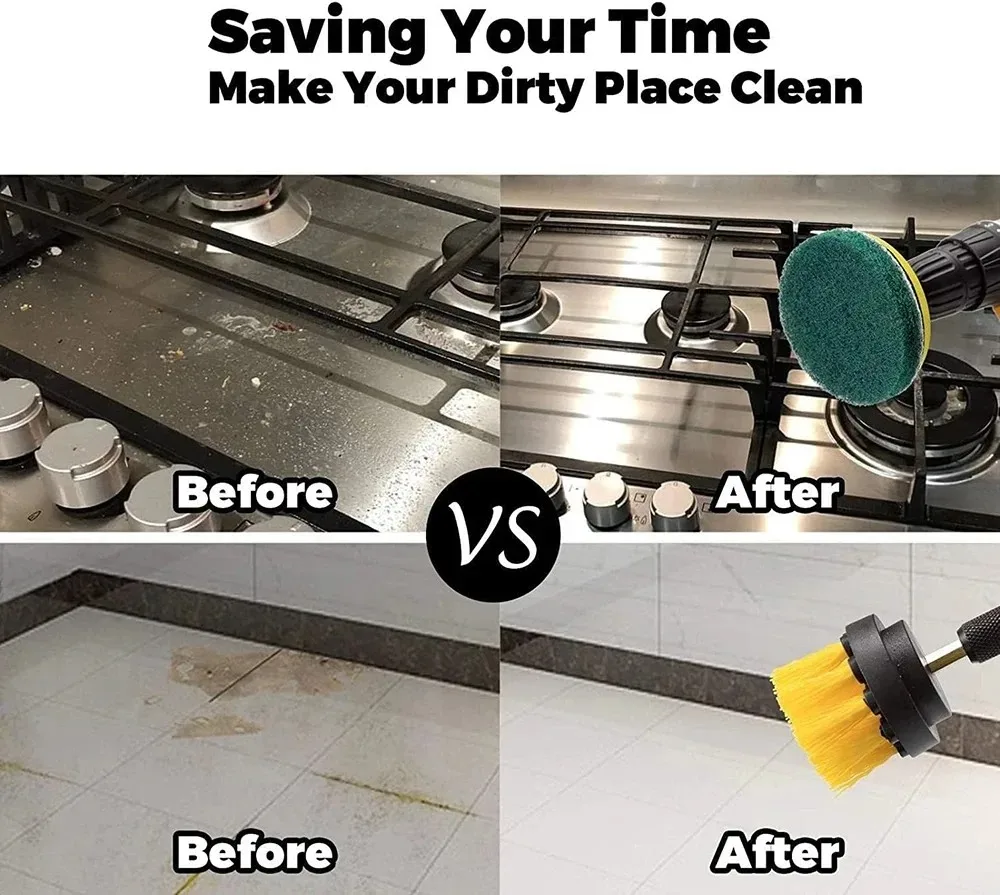 6cm diameter brush for scrubbing large areas, a cordless drill is not included in the package.