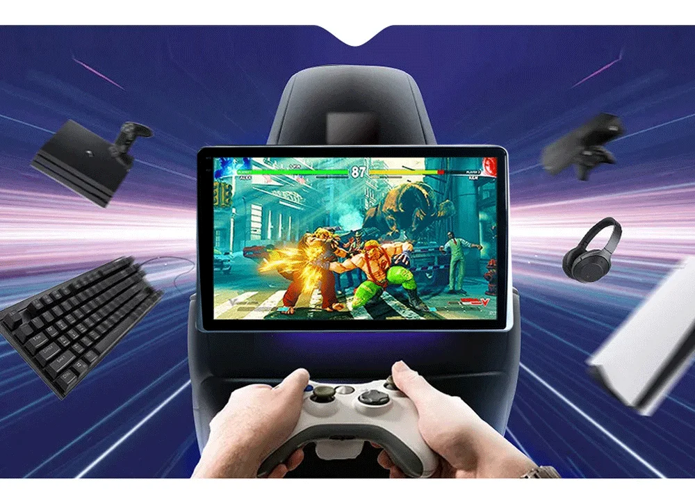 Multiple Ports Compatible and Built-in Speakers: This adjustable car tv has HDMI input ,you can connect to Computer, tv box ,Xbox , PS4,PS5 and other devices as display.This portable back seat TV has built-in speakers, you can also use FM transmitter to transmit audio to car speakers. In addition to this, Bluetooth headsets or wired headsets can also be used.