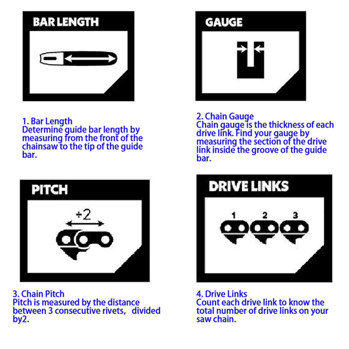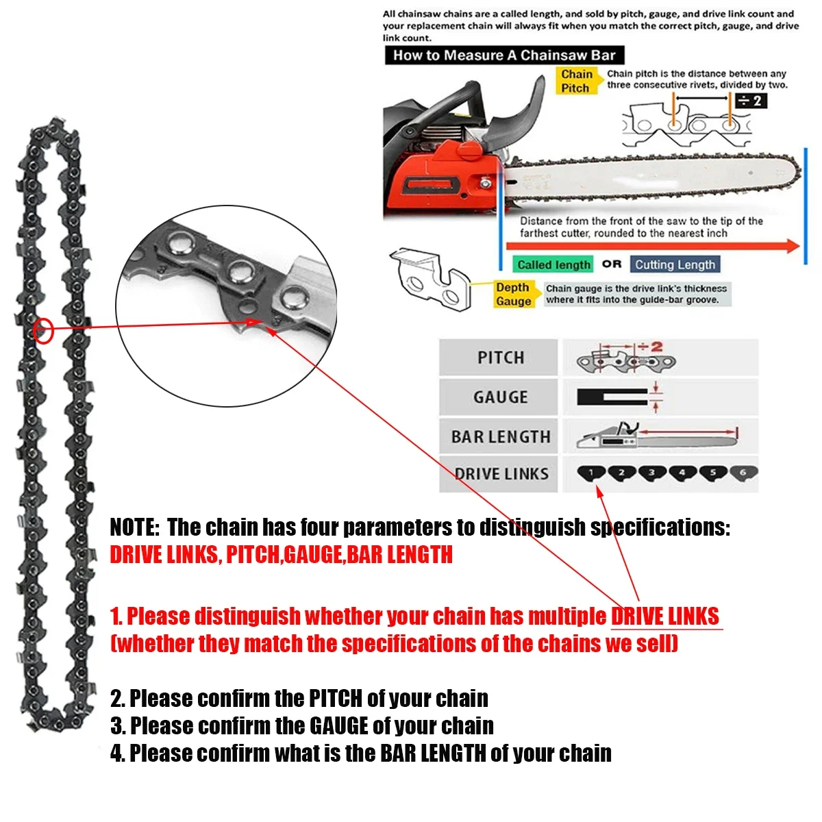 And this chain length size is not the only parameter to measure whether the chain is suitable for your chainsaw, there are several more important parameters that need to be matched, such as: pitch, chain gauge, transmission chain link, tool, these 4 parameters are the decision Reasons for whether it is right for your chainsaw.