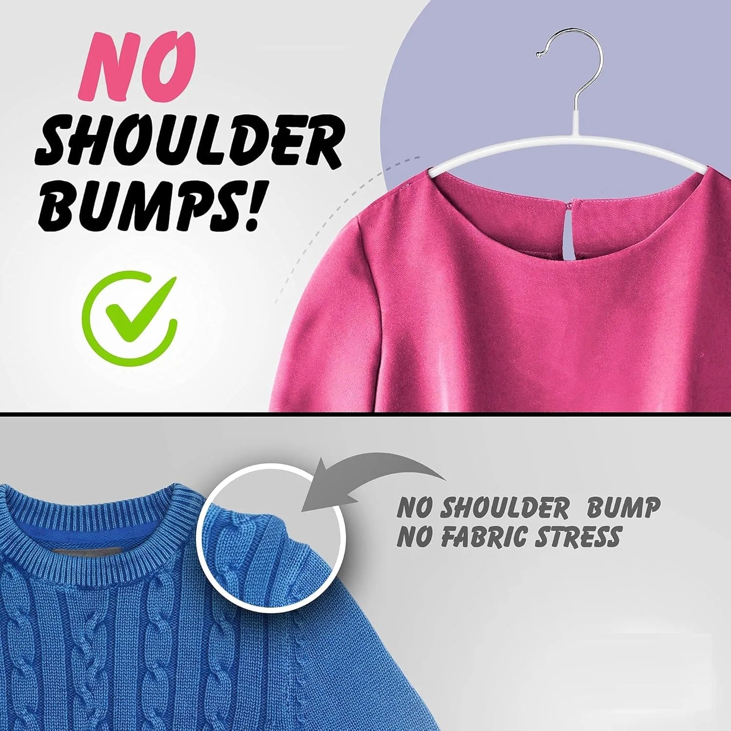 Heavy duty for suit, coat, sweater, jacket, shirts and more organization. Keep your clothes neat and organized.