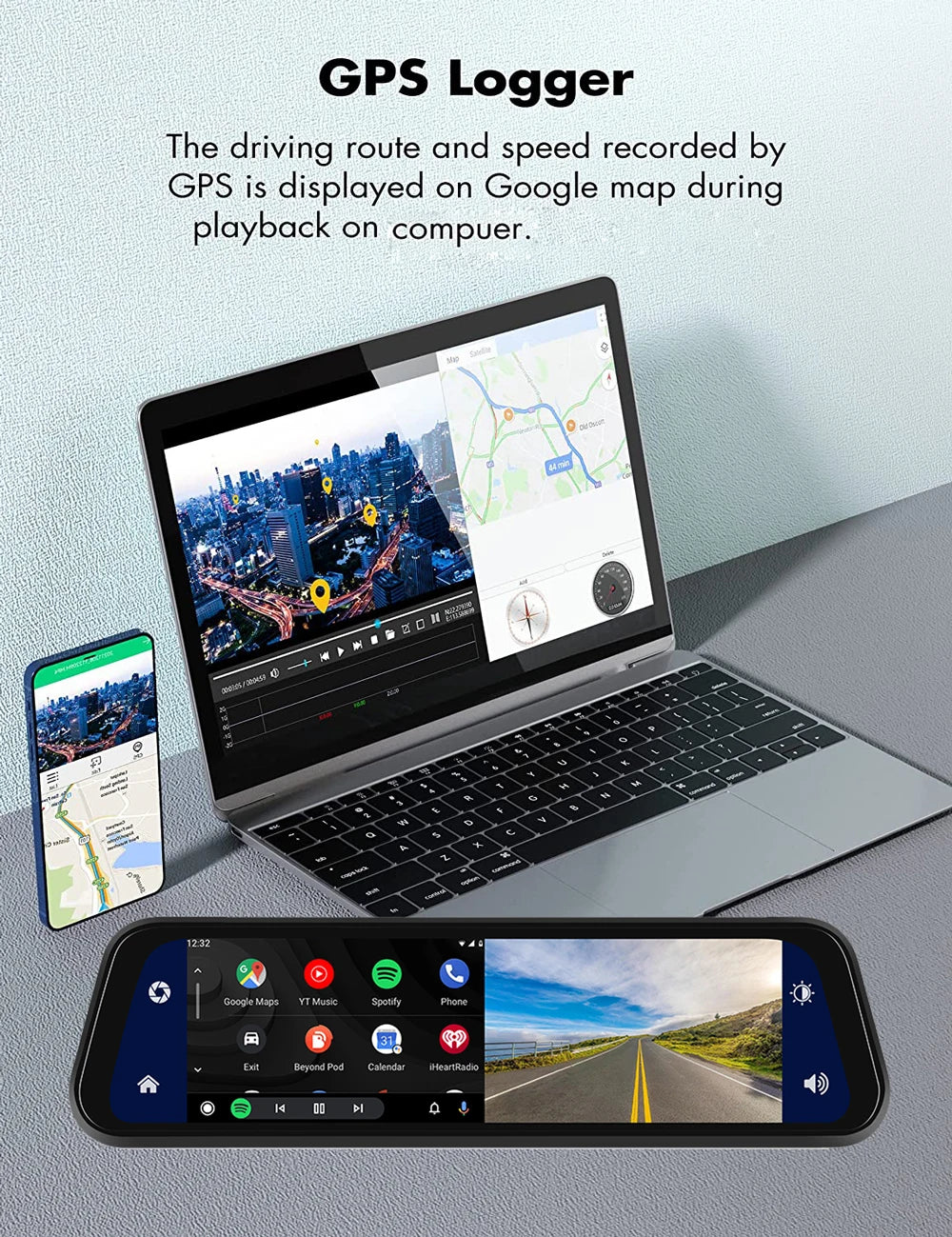 10" Dash Cam 4K 3840*2160P Car Dvr Carplay Android Auto GPS 5G WIFI AUX Stream RearView Mirror Dashcam Camera Drive Recorder FM