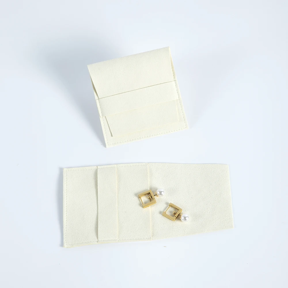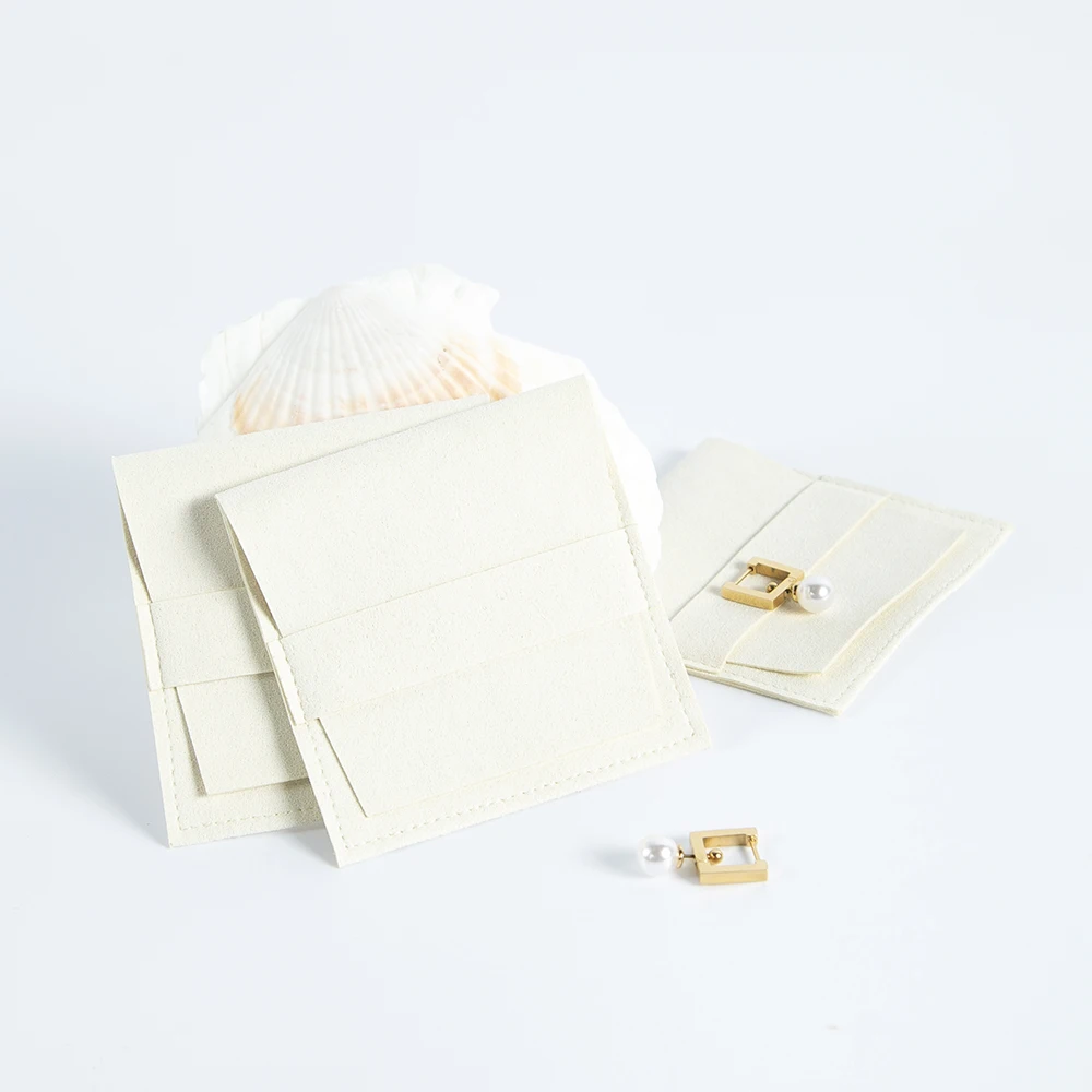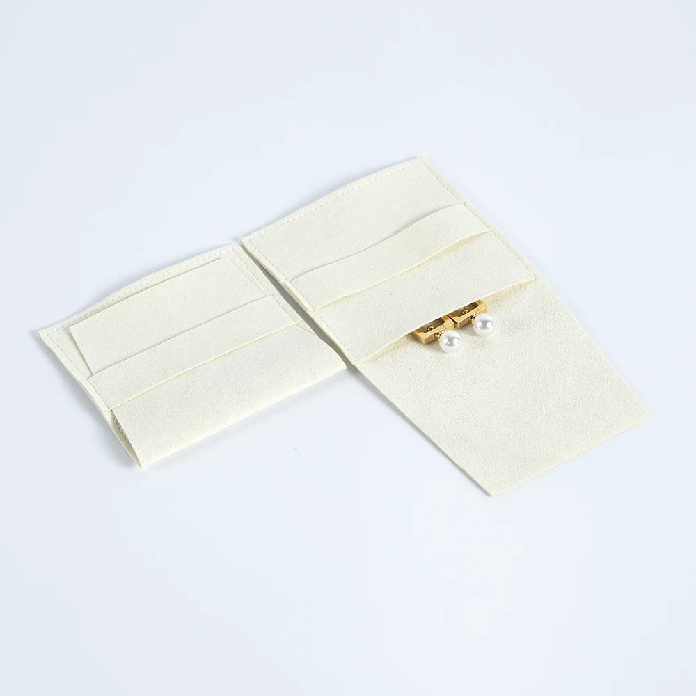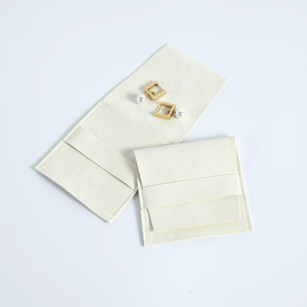 10-Pack Bulk Beige Suede Microfiber Jewelry Pouch Bag Small Size Envelope Jewellry Packaging Pouch For Necklace Bracelet Ring