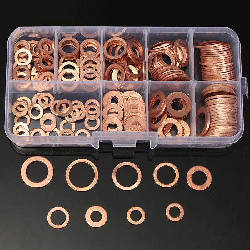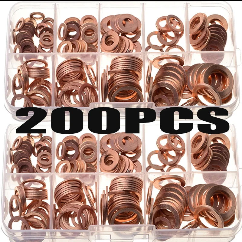 M5-M14 Solid Copper Washers Flat Ring Sump Plug Oil Seal Gasket Assorted Set 200pcs Professional Hardware Accessories Kit