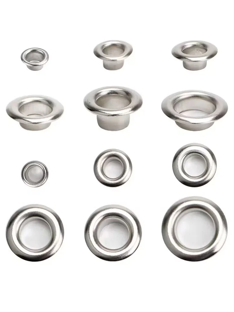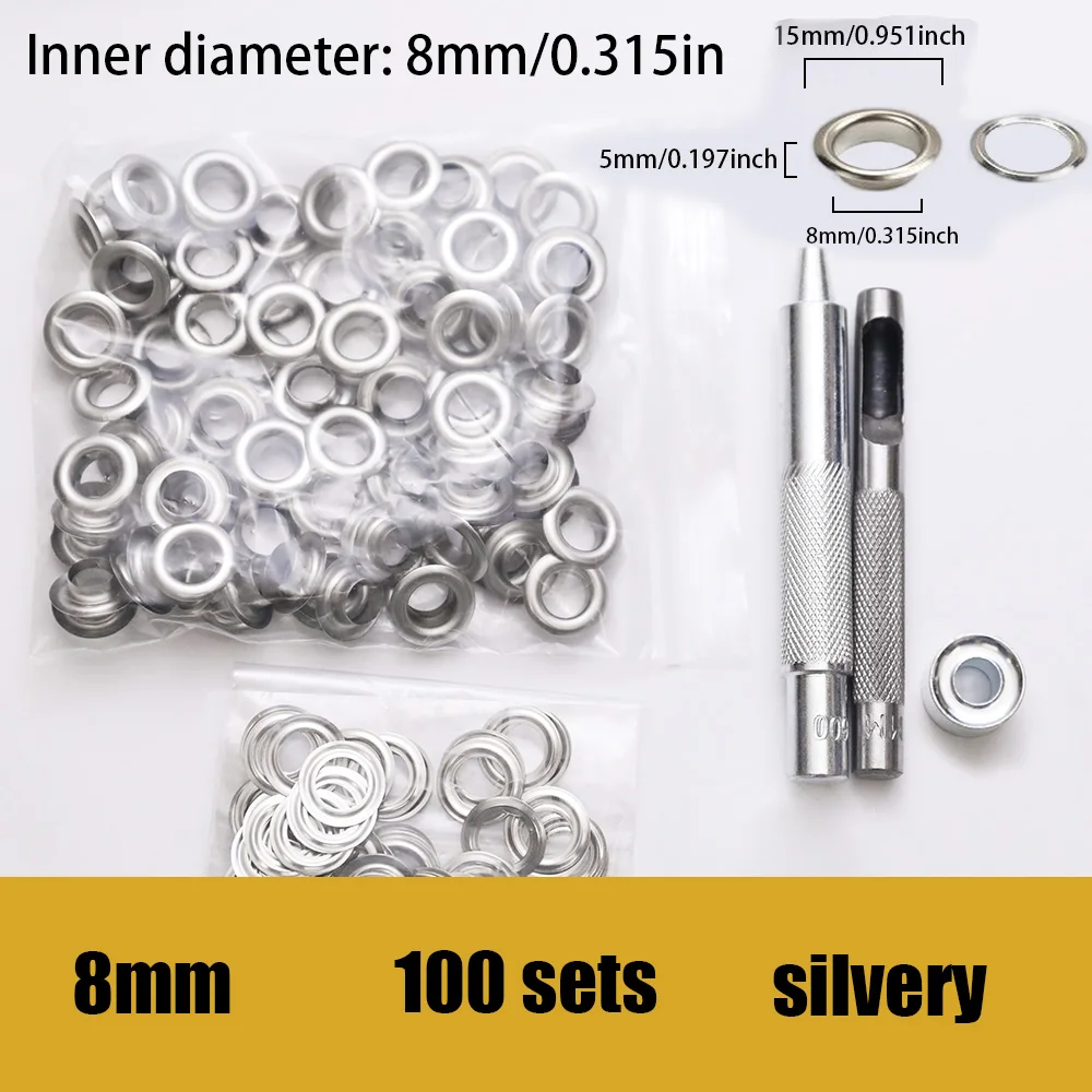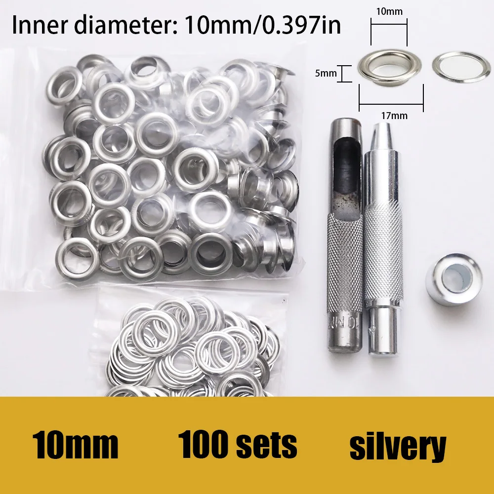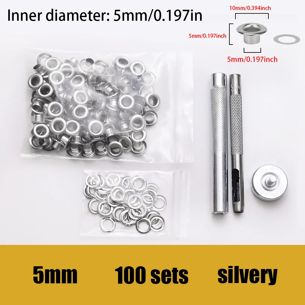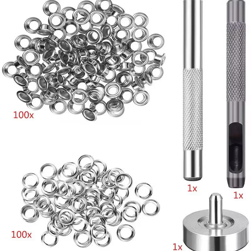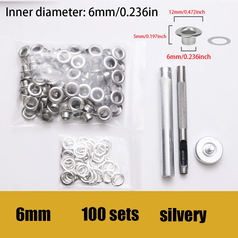 100 sets of stainless steel eyelets with a tool ,for canvas holes, clothes, handbag, 5mm/6mm inner diameters