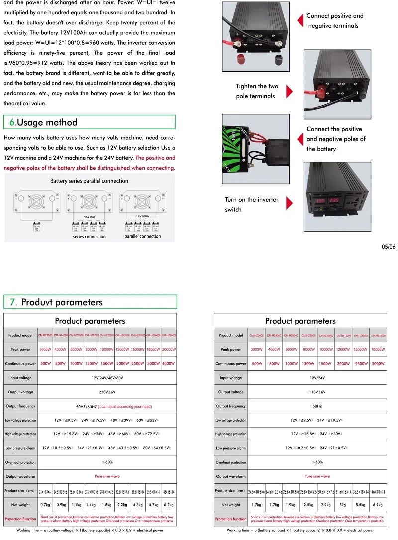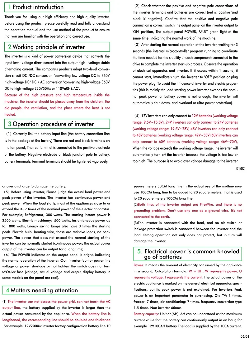 NOTE:(Pure Sine Wave Inverter suitable for sensitive load appliances, such as refrigerators, air conditioners, coffee machines, bread machines, induction cookers, etc.)