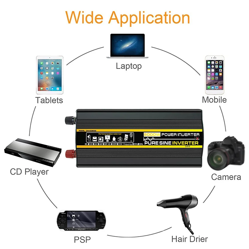 * [Widely Applications ] Great for gift,charging TV, washing machine, air conditioner, refrigerant, Microwave and big power appliance. These can only operate a few 220V loads without interference. It can also use with in the car or solar system.