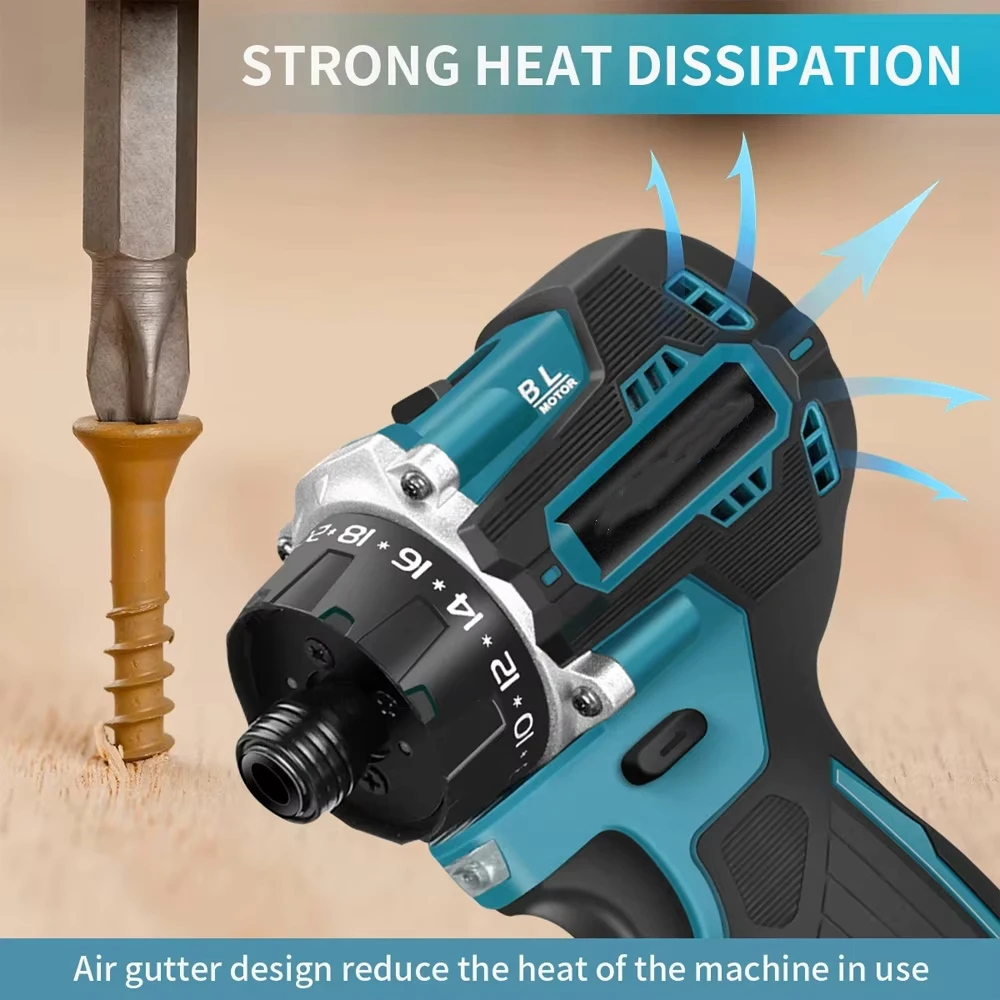 1000W Cordless Electric Screwdriver 20+1 Torque 1/4inch Brushless Electric Drill Power Tool for Makita 18v Battery 280N.m
