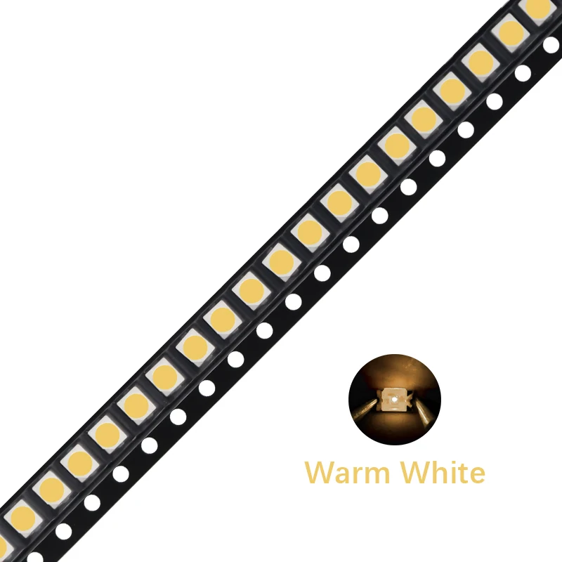 Quantity: 100 pieces / PackSize:3.5 x 2.8 (mm) / 0.12 x 0.1 (inch) Emitting Color: Warm White (3000-3500K) / White (6000K-9000K) / Red / Green / Blue / Yellow / Orange / Pink / RGB Common Anode