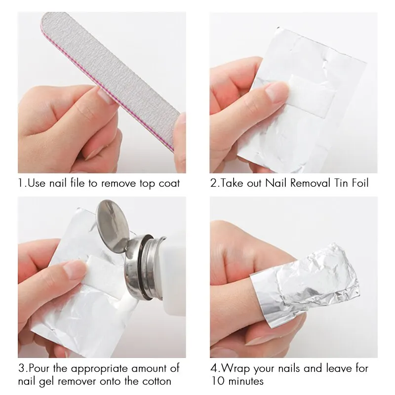 You just need to apply a liquid remover to the cotton, and then wrap the nail in aluminum foil for a period of time, making it super easy to use. You can use this nail foil packaging at home or in a salon, which is made for professionals and DIY enthusiasts. It allows you to change your favorite nail polish at any time and match with different dressing styles.