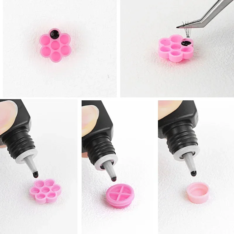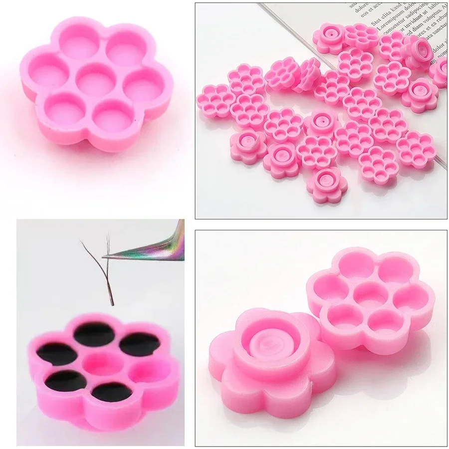 100pcs Eyelash Extension Pink Flower Glue Delay Cup Tattoo Adhesive Pigment Holders Grafting Eye lashes Holding Trays Tools