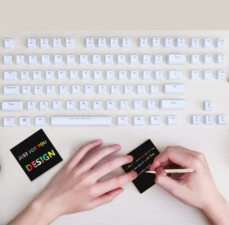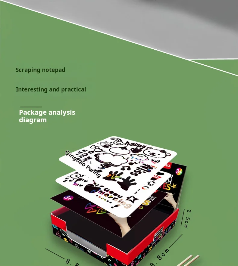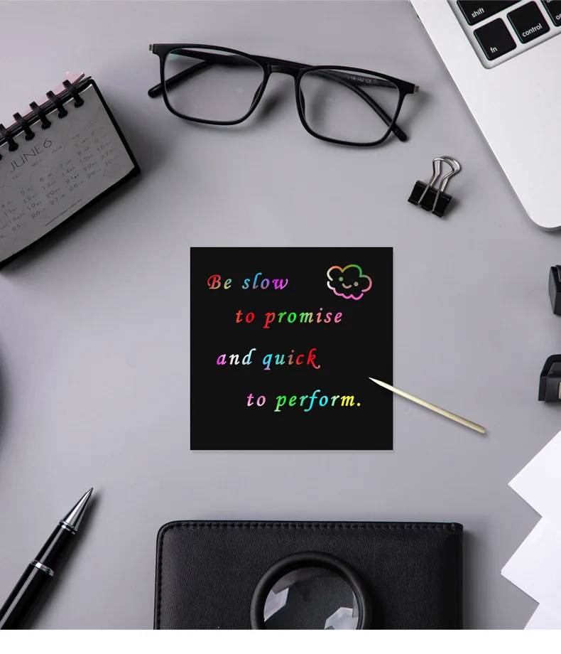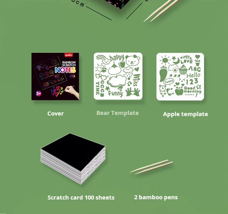100PCS Rainbow Scratch Mini Notes Paper Pad Cards With Drawing Stencil Children Kids DIY Draw Painting Educational Toys Gifts