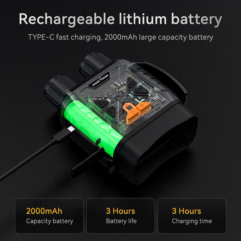 Full Dark 800m Infrared :Equipped with full dark 800m infrared capability, these binoculars allow you to see clearly even in complete darkness, perfect for night-time activities.