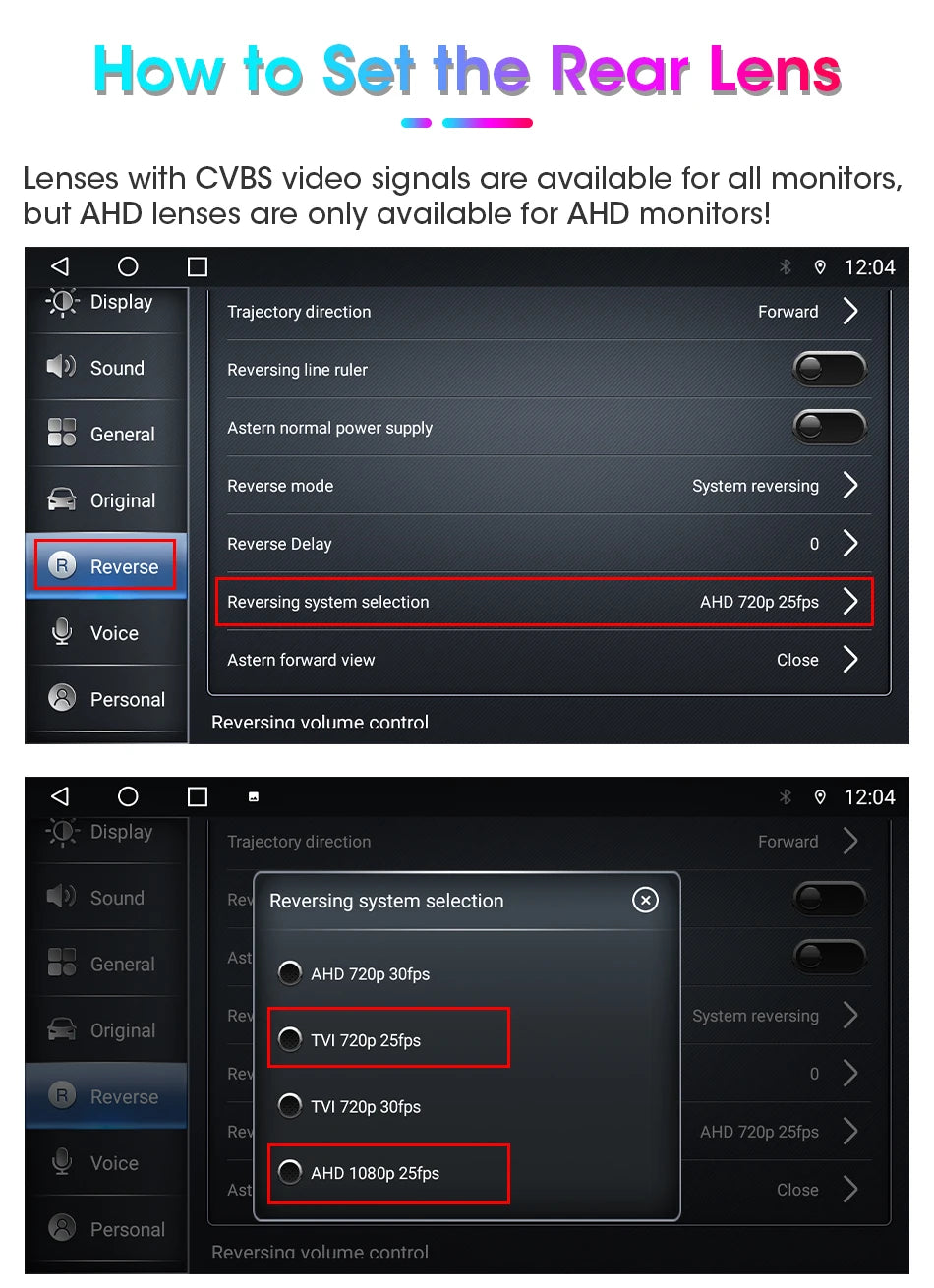 Go to Car Settings> Factory Defaults> Reversing Settings (Image)> Select AHD 1080P