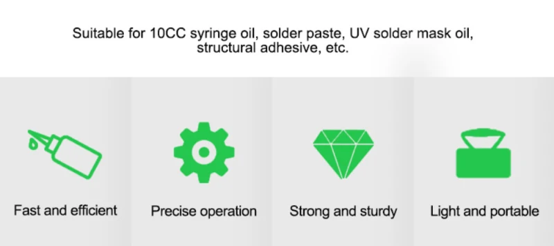 Suitable for 10CC/30-60CC syringe oil, solder paste, UV solder mask oil, structural adhesive, etc.