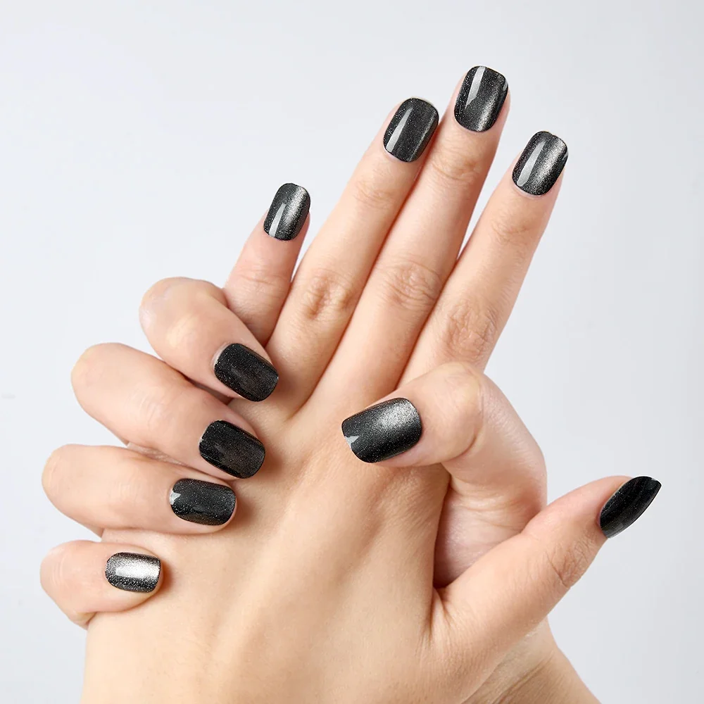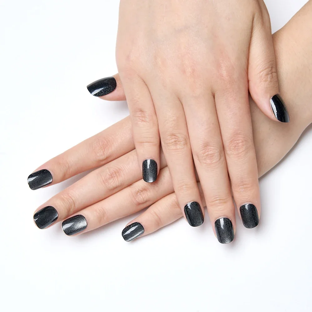 10Pcs Black Glitter Cat Eye Square Nails Set Press on Reusable Acrylic Fake Nails with Glue for Women/Girls Party Wear Nails Art