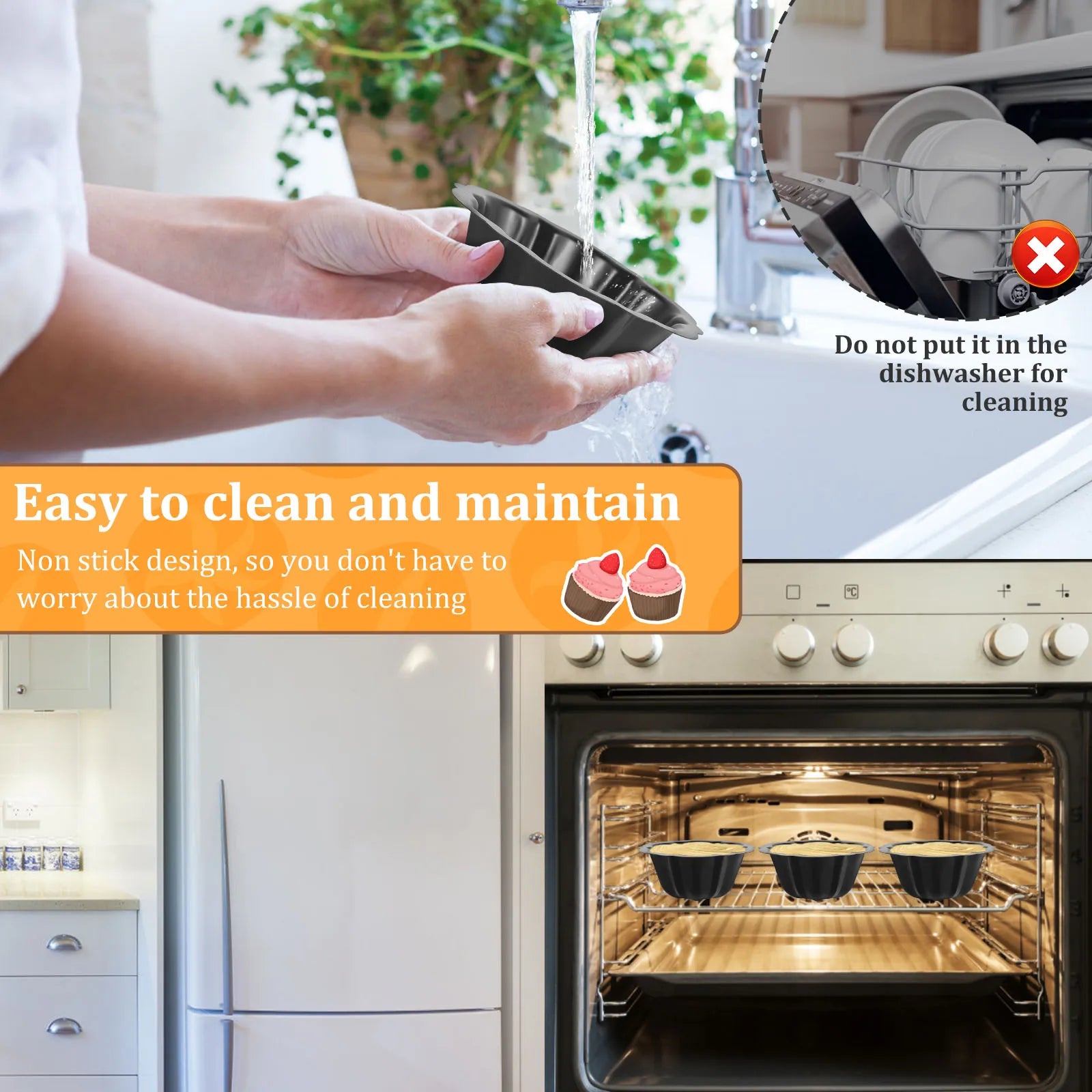 Suitable Size: Carbon steel mini cake pans are about 12cm wide and 5cm high, suitable for you to make cakes; please check the size carefully before purchasing, do not put it in the dishwasher.
