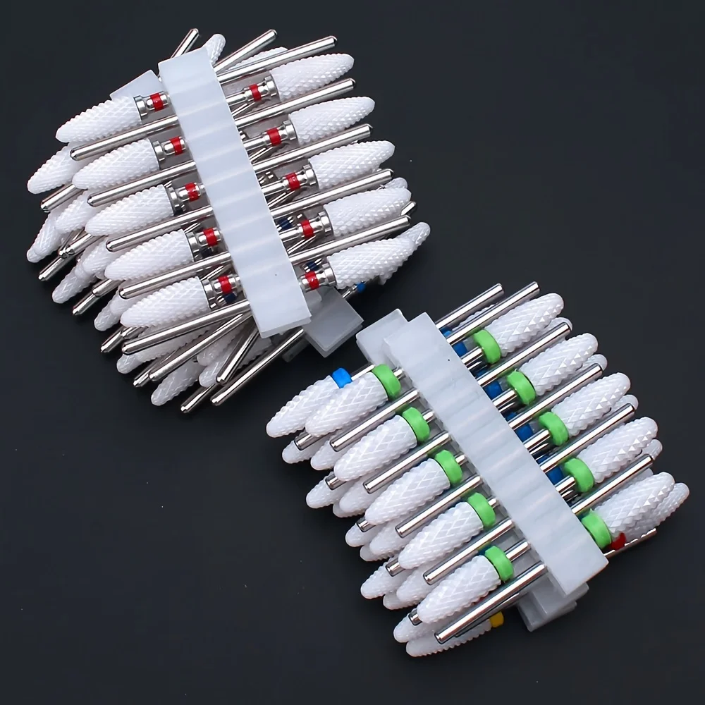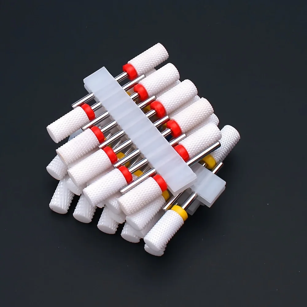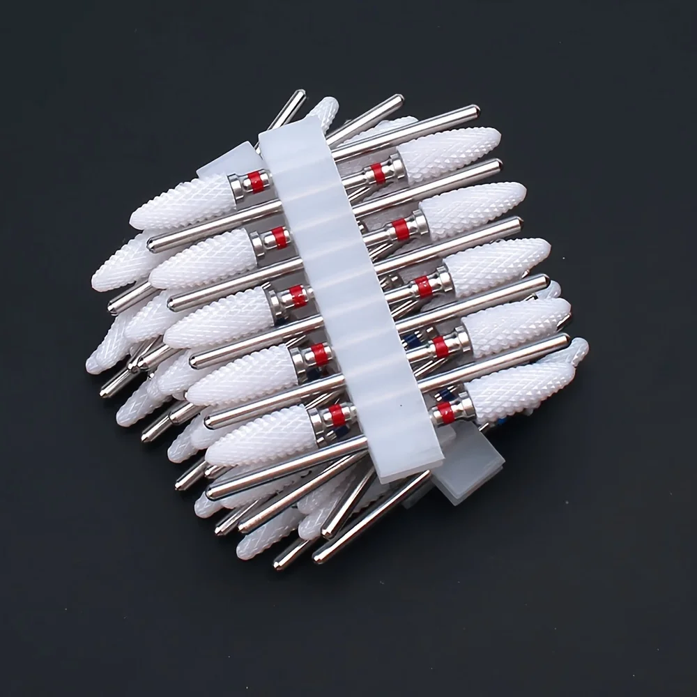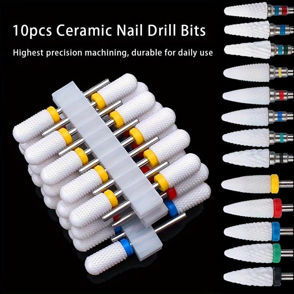 10pcs Ceramic Nail Drill Bits Set, Electric Manicure & Pedicure Milling Cutter, For Nail Polishing Machine