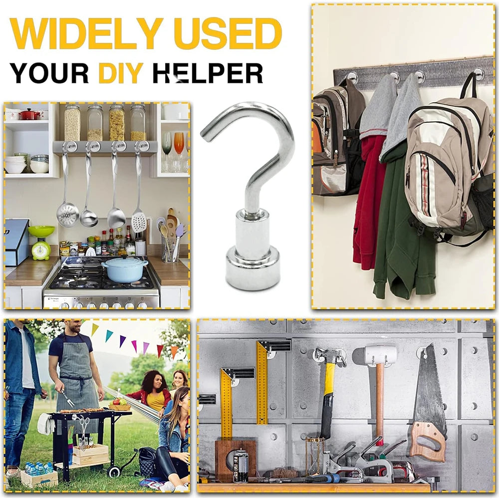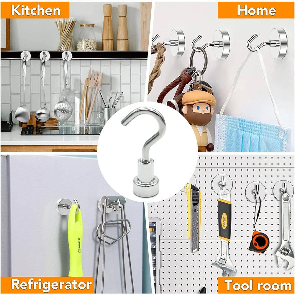 10Pcs Strong Magnetic Hooks Load Bearing Hook MultiPurpose Storage For Home Kitchen Bar Storage Key Hanging Hanger