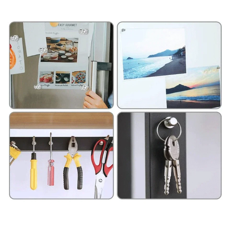 ▲【Strong Fridge Magnet】Suitable as jewelry hangers, hardware or garage tools hangers, key holders, or kitchen utensils organizer. Perfect for holding printer paper, photos, posters, cards on whiteboards, fridges, bulletin boards, magnetic maps, calendars, lockers, file cabinets, and other magnetic surfaces.