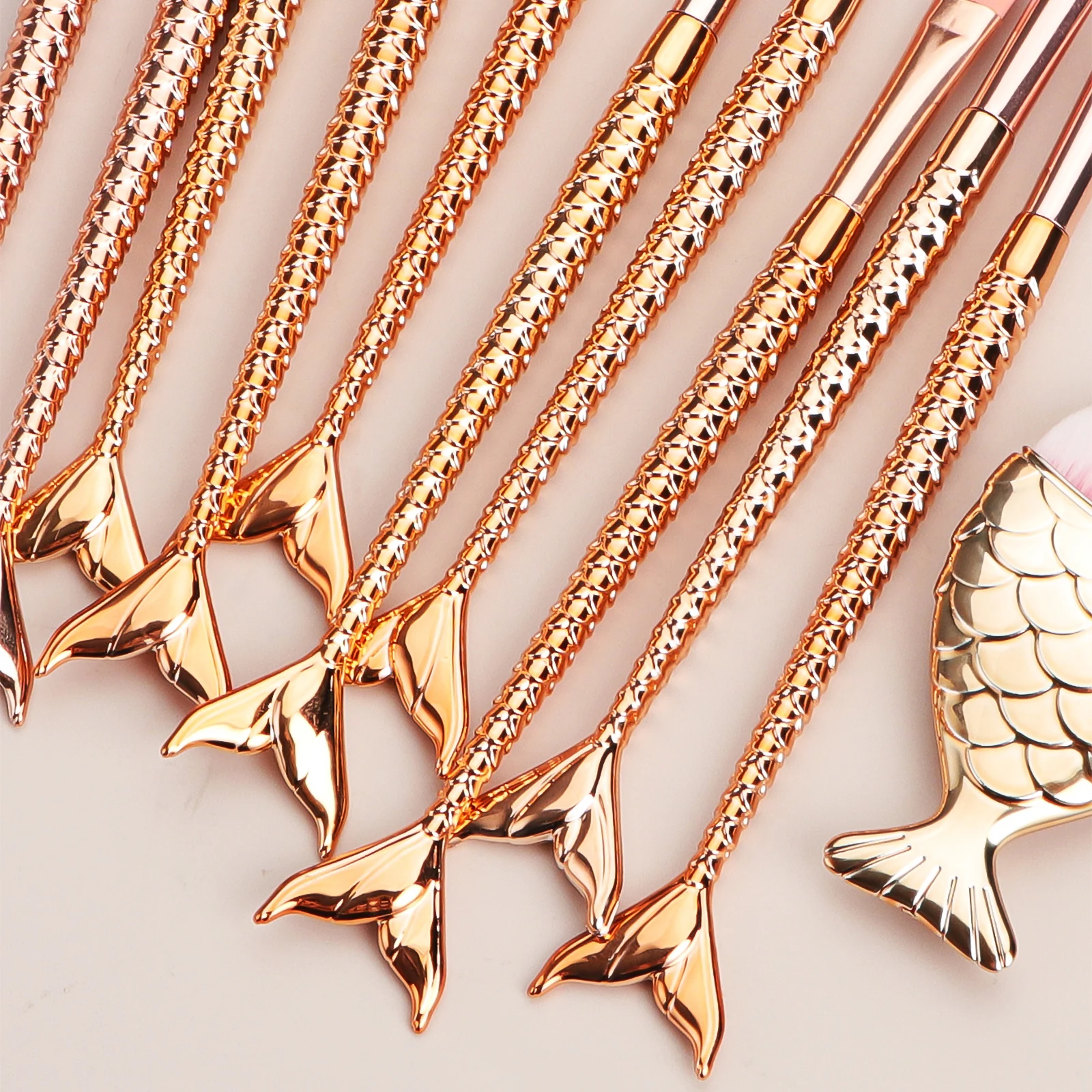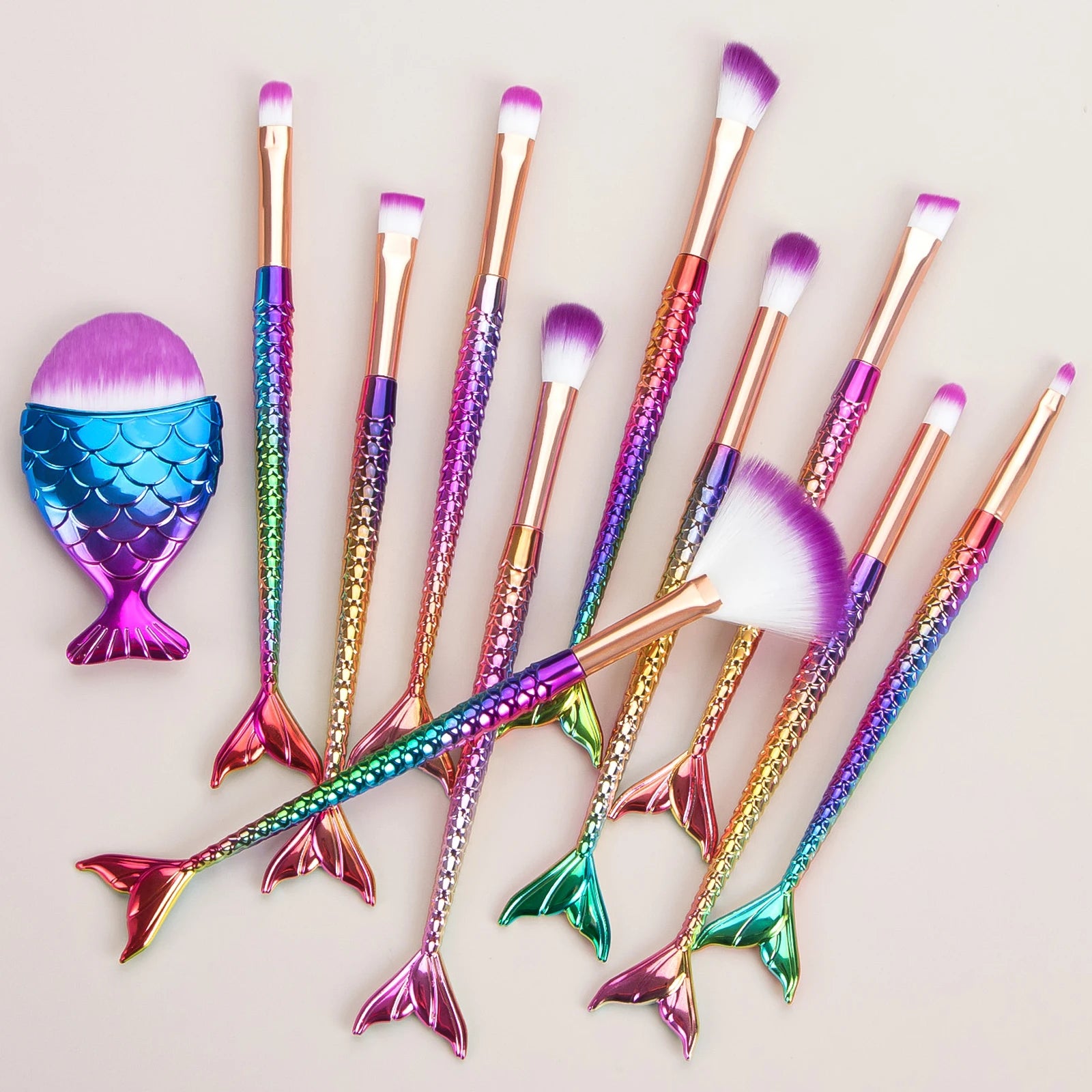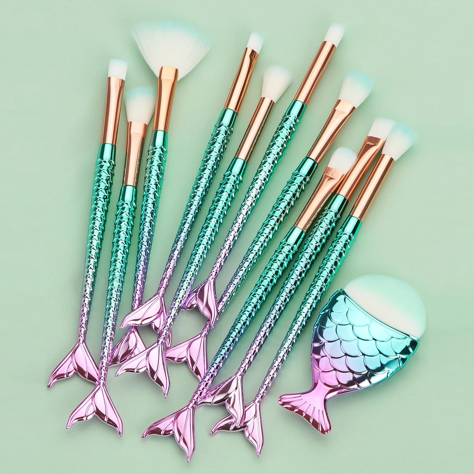 11 pcs mermaid makeup brushes, fish tail makeup brush set, beauty tools