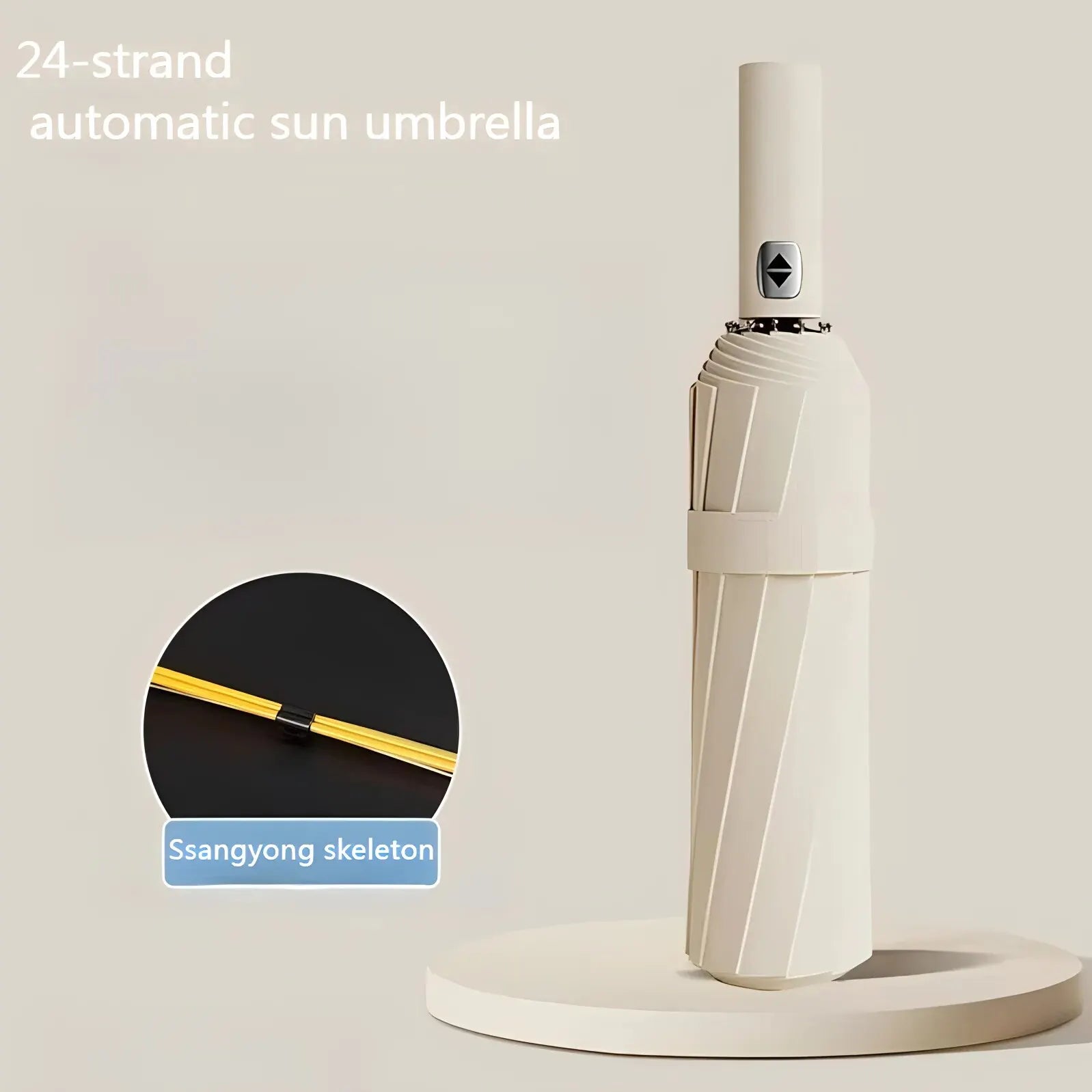 12 Bone Black Glue Fully Automatic Umbrella With Thick And Durable Keel Three Fold Umbrella UV Resistant Folding Umbrella 12 Bon