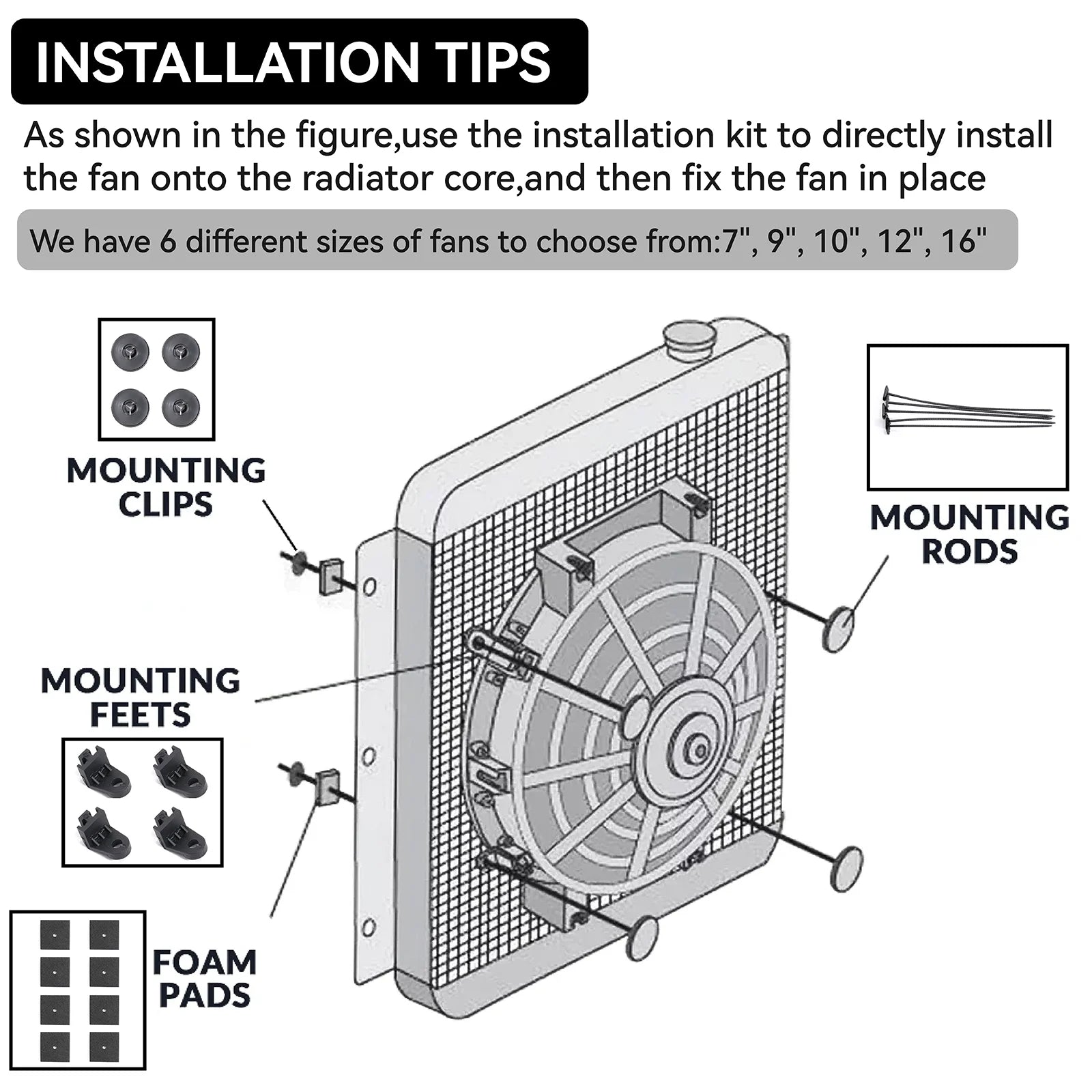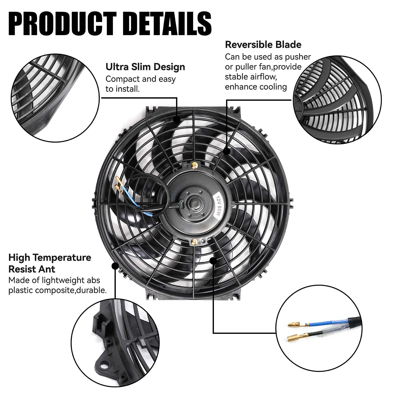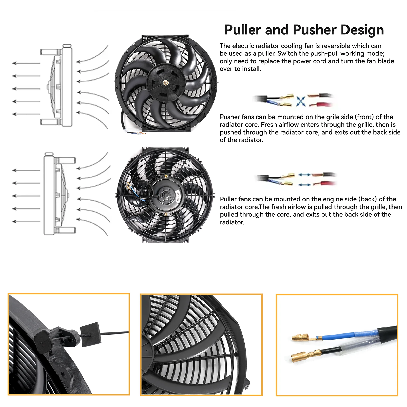 12 Inch Car Engine Cooling Fan Universal Car Slim Push Pull Electric Engine Cooling Fan 12V with Mounting Kit
