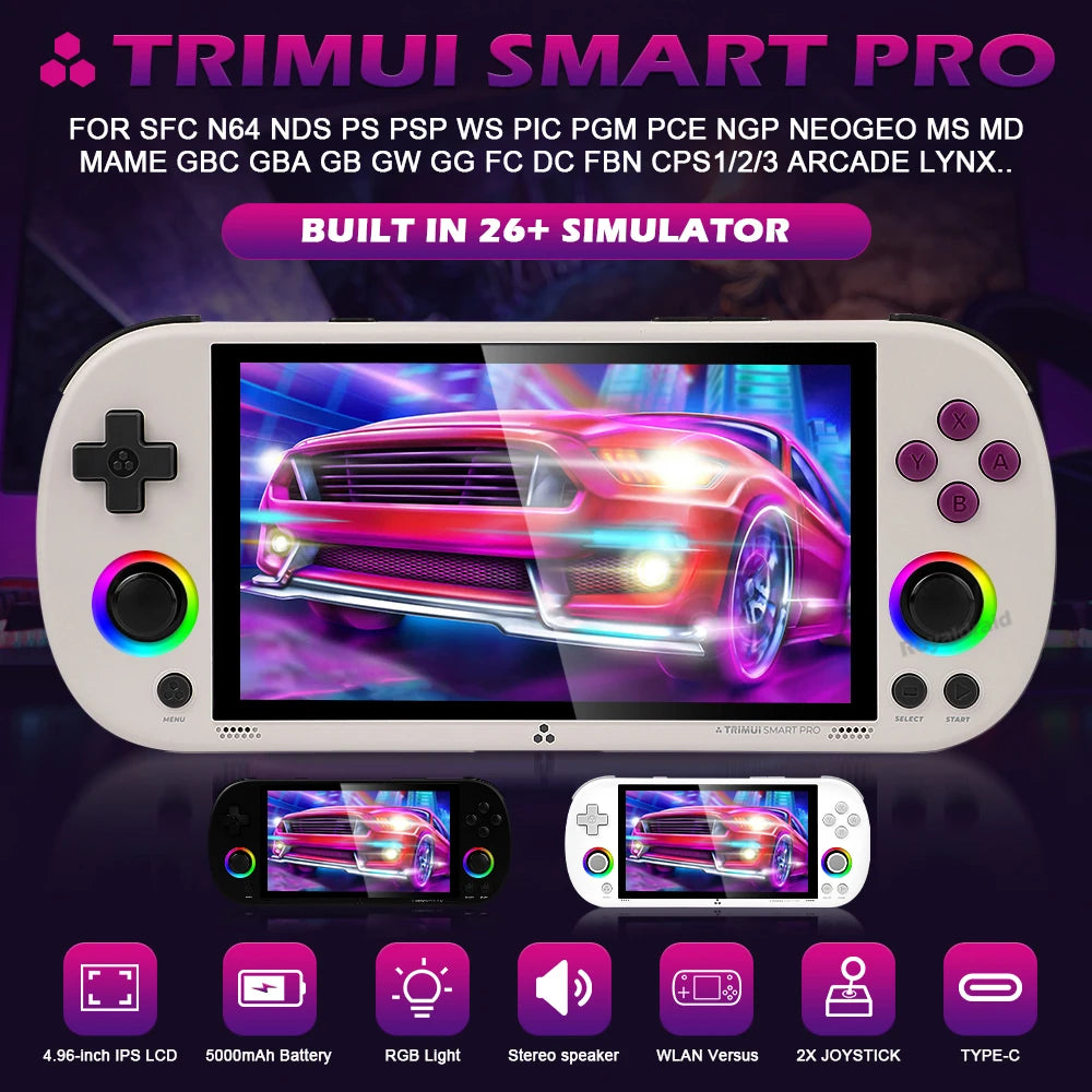 128G 256G Trimui Smart Pro Handheld Game Console 4.96''IPS Screen Linux System Joystick RGB Lighting Retro Video Game Player NEW