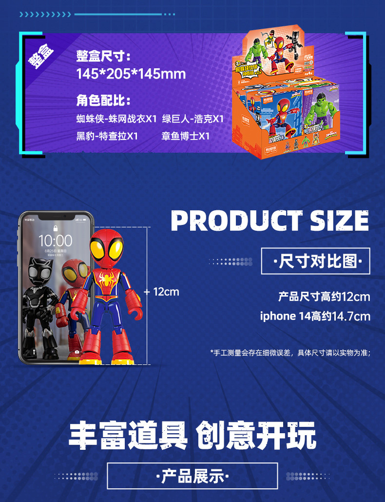 12cm Marvel Spider Amazing Friends 3 Blind box Model kits Spider Man Peter Parker Miles Gwen Action Figure Splicing toys