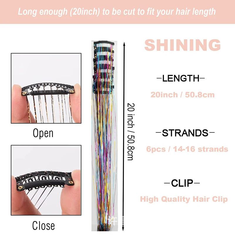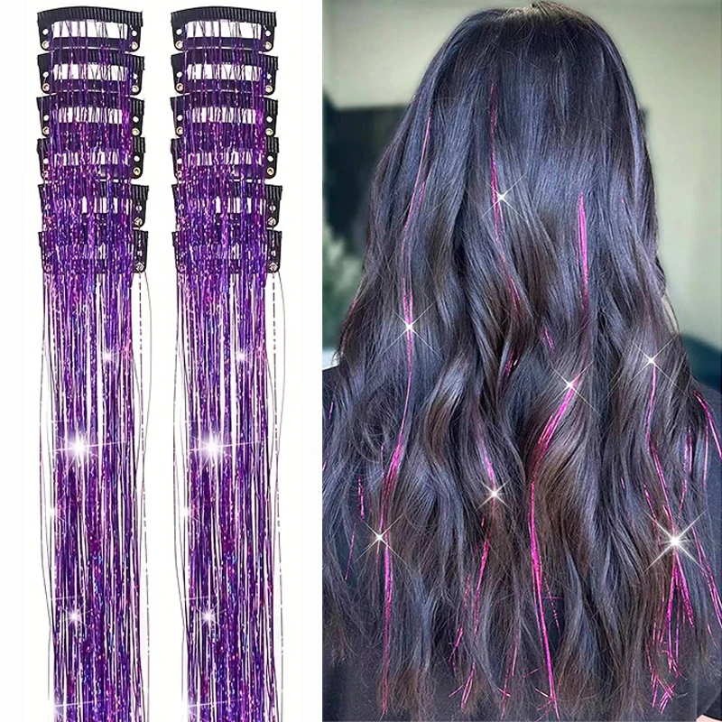 12pcs Per Pack of BB Hair Clips,Shiny Metallic Hair Extensions with Clips,Synthetic Hair, Sparkling Hair Accessories for Women