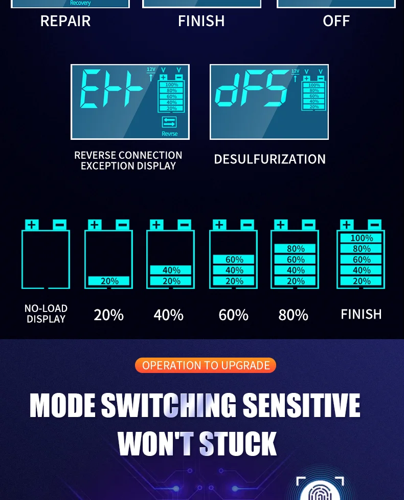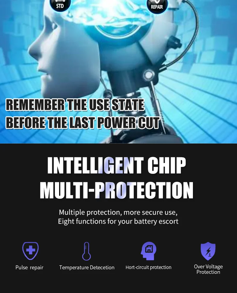 • Pulse Repair Technology :The charger uses pulse repair technology to diagnose and repair damaged batteries, ensuring they can be charged effectively.