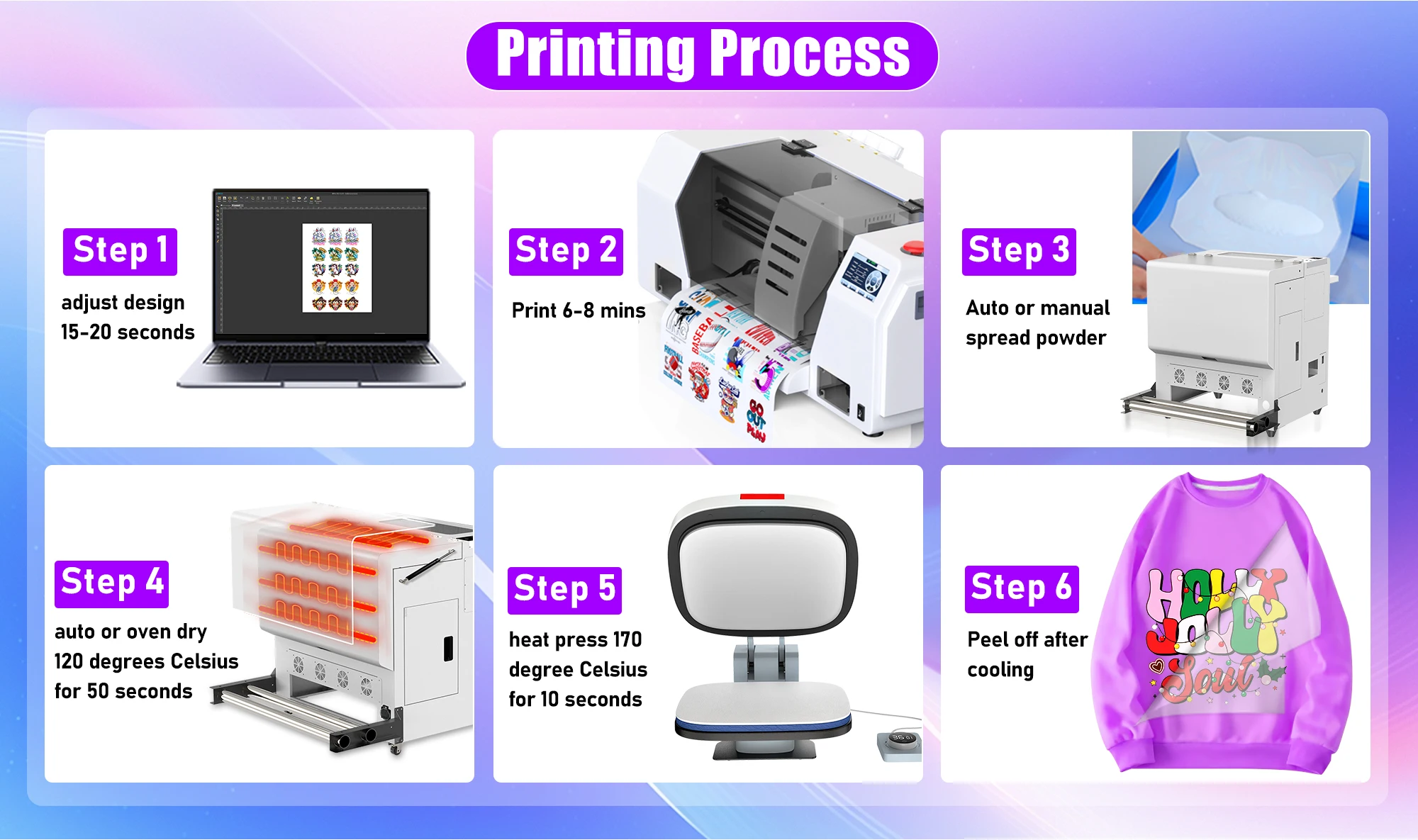 Step 4: auto or oven dry 120 degrees Celsius for 50 seconds