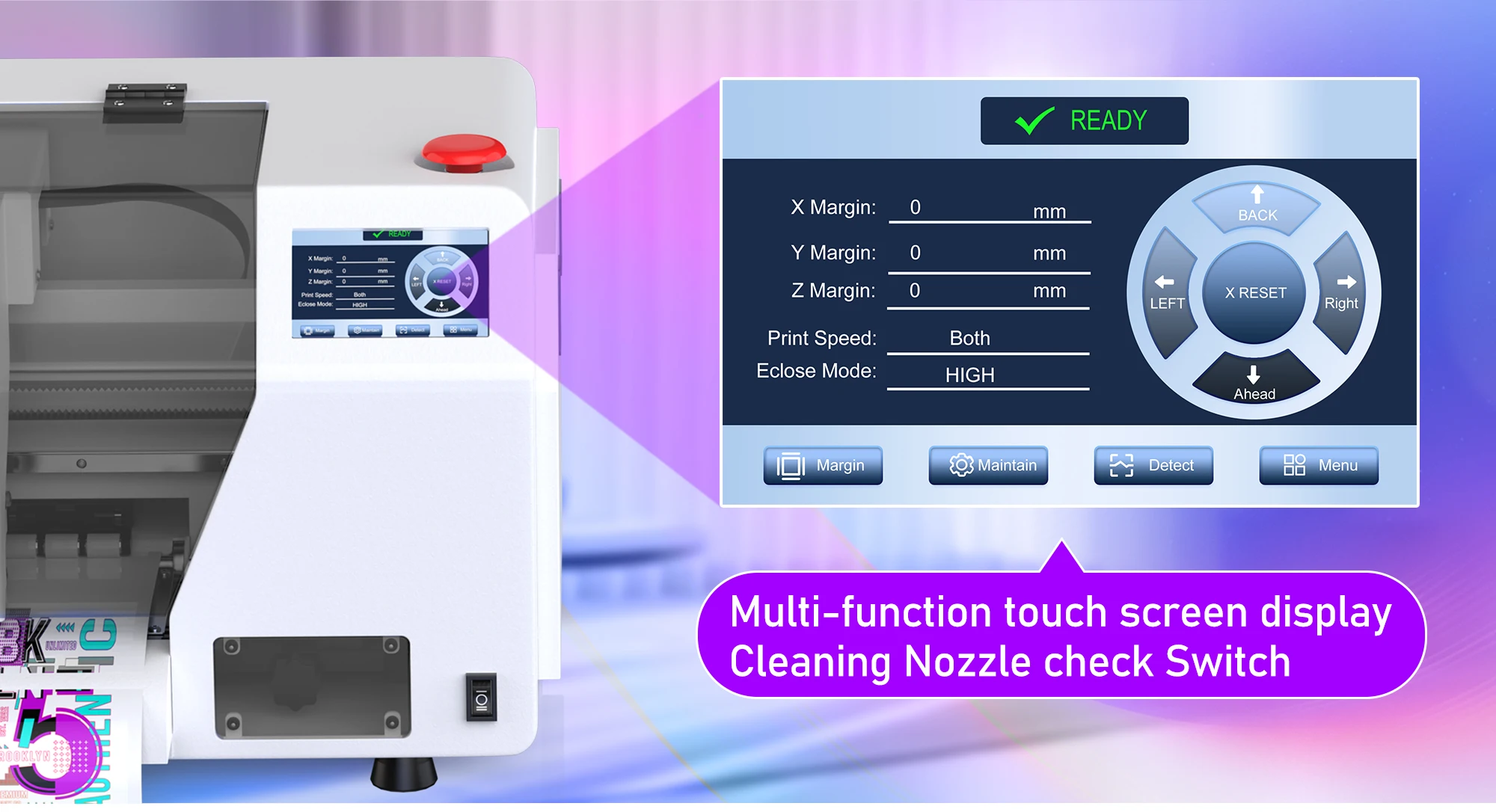 Multi-function touch screen display Cleaning Nozzle check Switch