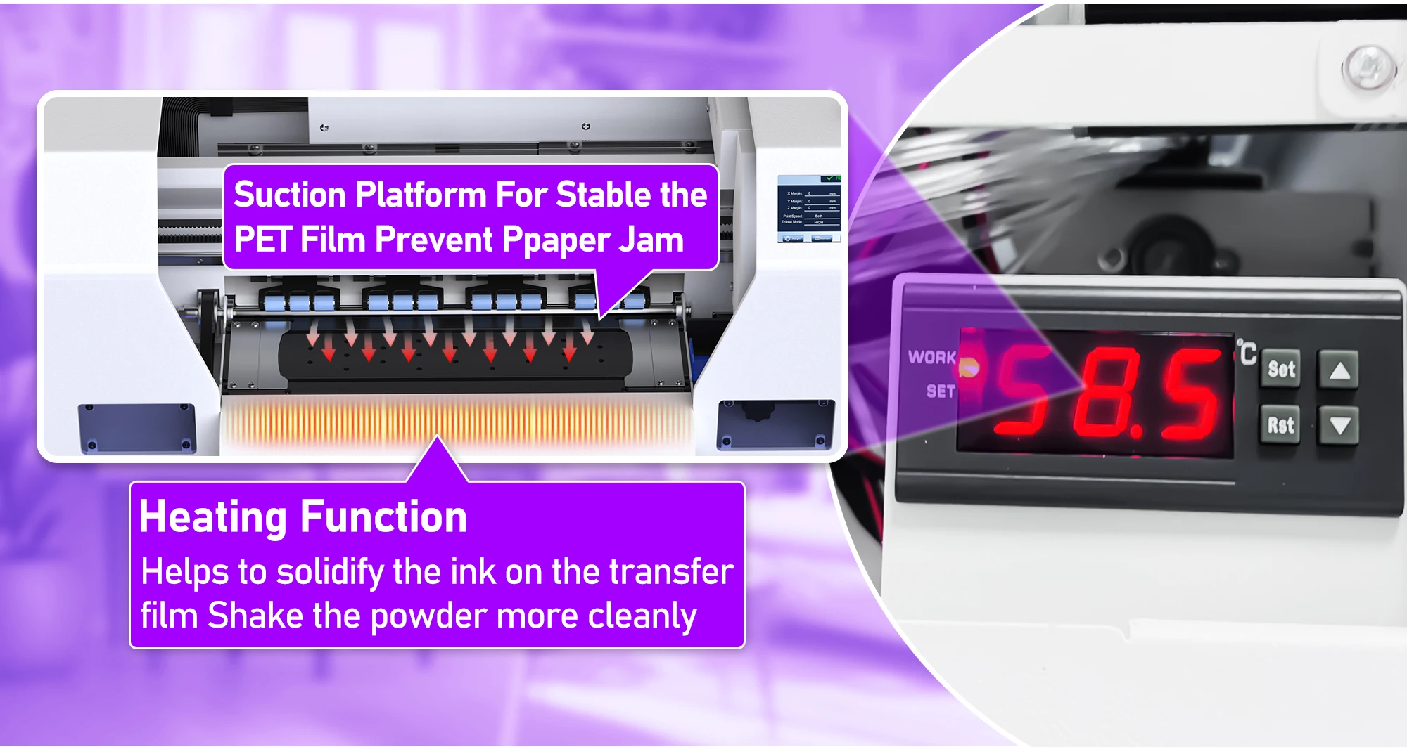 Heating FunctionHelps to solidify the ink on the transfer film Shake the powder more cleanly