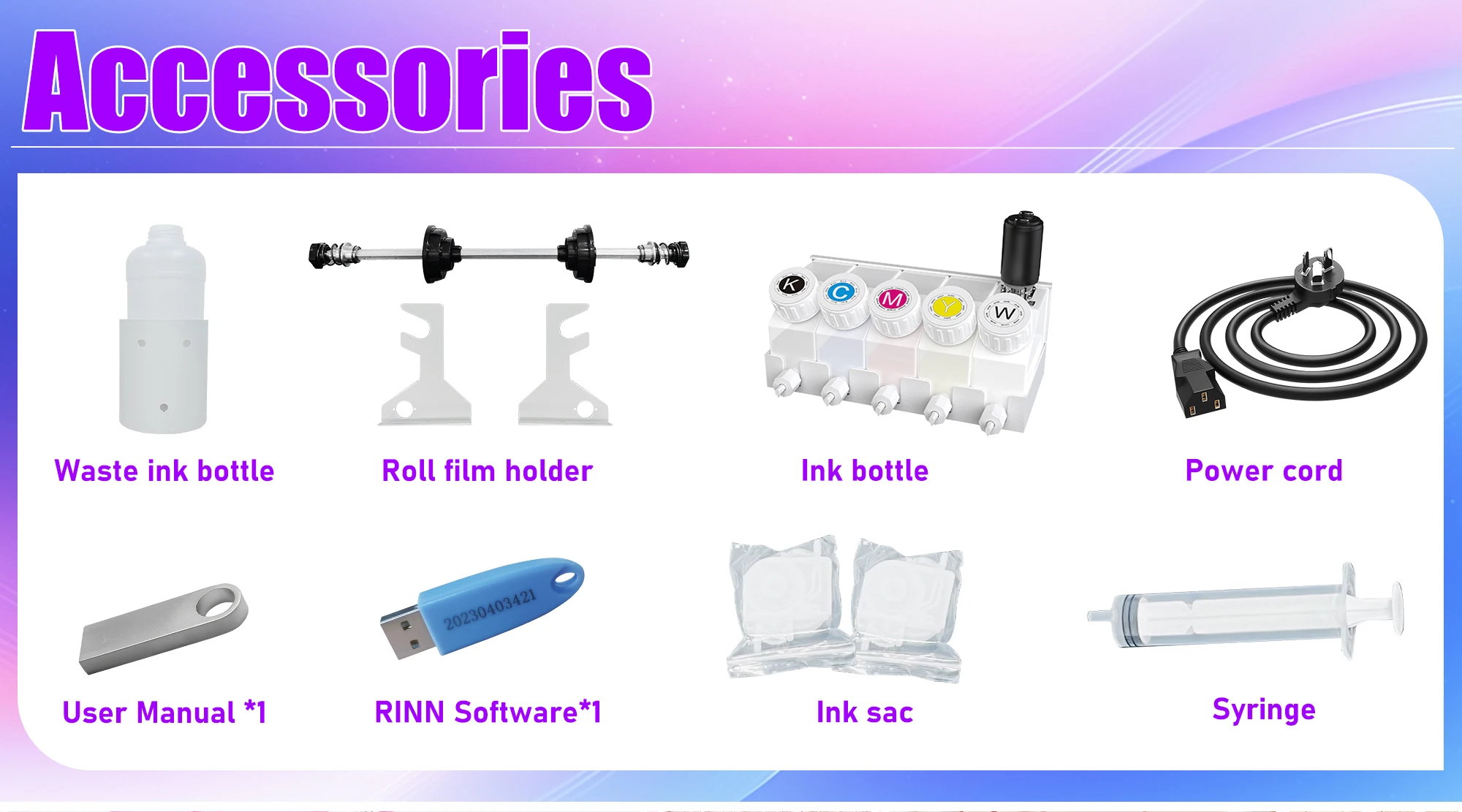 2.RIPrinter Software + User Manual +Roll Holder