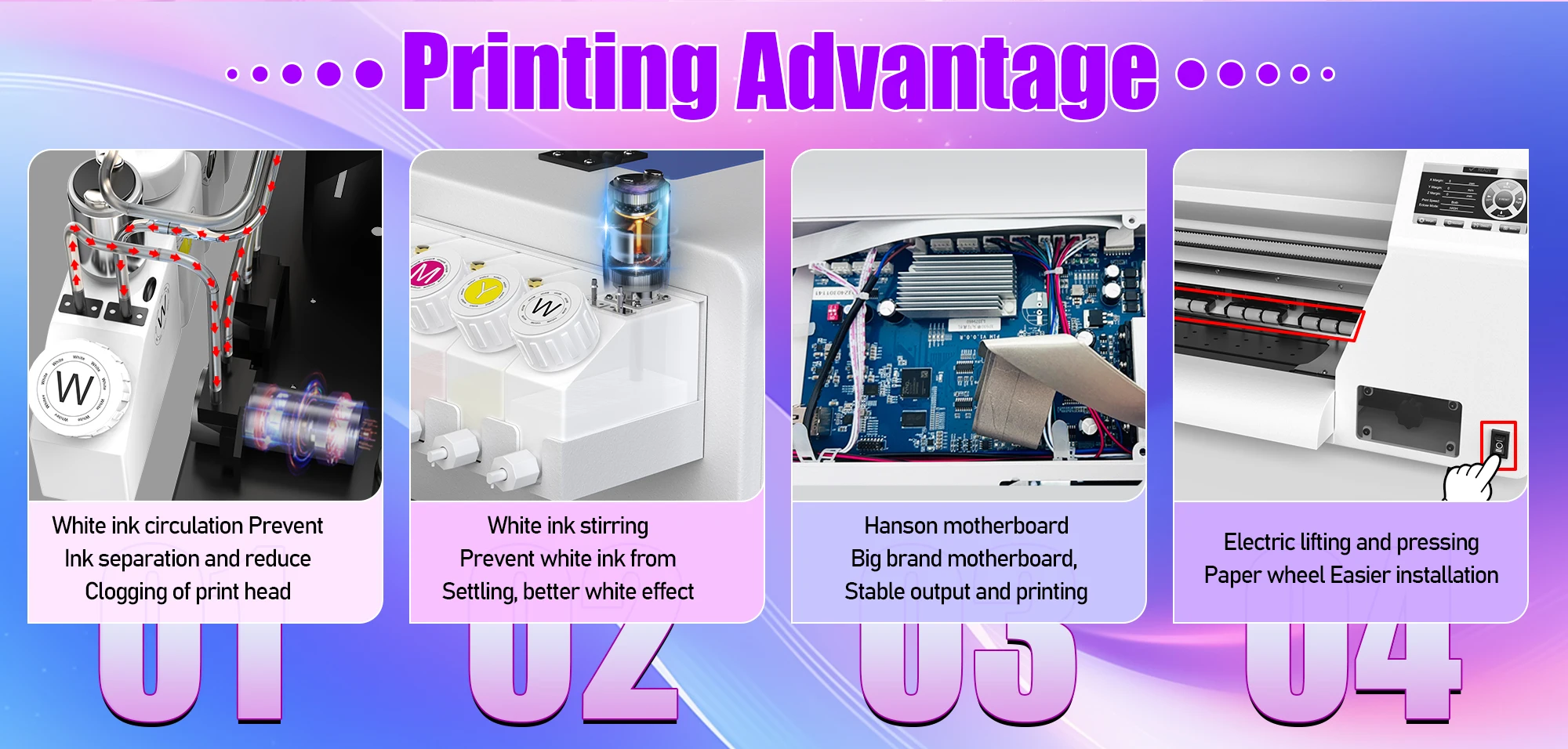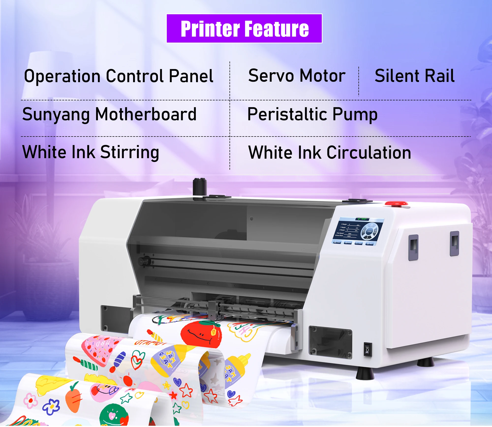 🌟White Ink circulation And White ink stirring prevent white ink from setting , better white effect preventing printhead clogging with minimal maintenance cost.