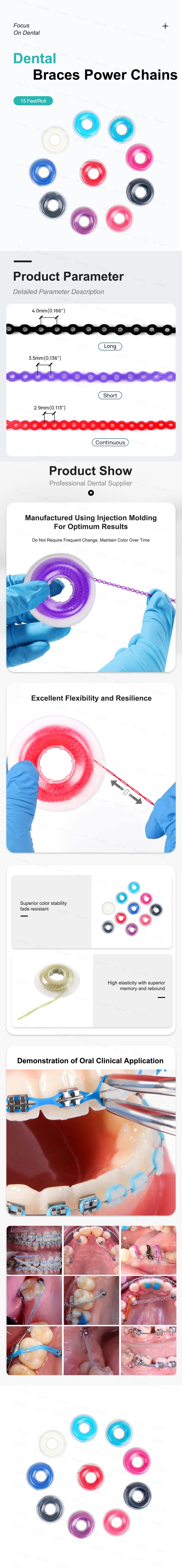 15 Feet/Roll Dental Orthodontic Elastic Ultra Power Chain Rubber Bands Long Short Continuous Denspay Dental Orthodontic Material